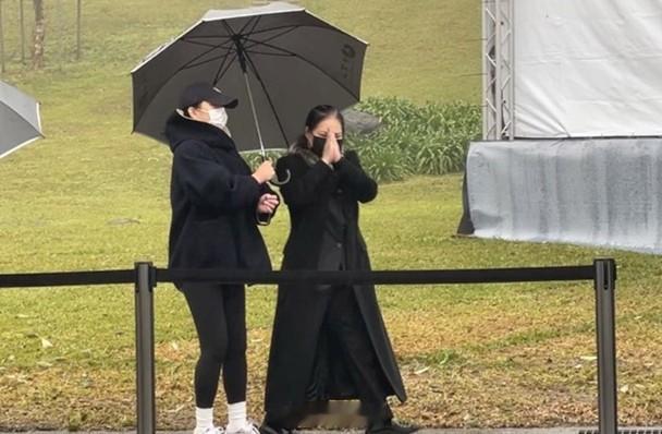 儘管天公不作美,大S生前好友仍是撐傘陸續抵達現場,似乎不想錯過能緬懷她的重要時刻,儀式現場還播放ASOS的歌曲《姐妹情深》,增添些許哀戚氛圍,讓眾人不禁紅了眼眶,小S稍早抵達現場時,只見她戴上墨鏡、一身黑的裝扮,似乎不想讓人看到悲傷神情,老公許雅鈞則是在旁撐傘全程守候,做最有力的後盾。