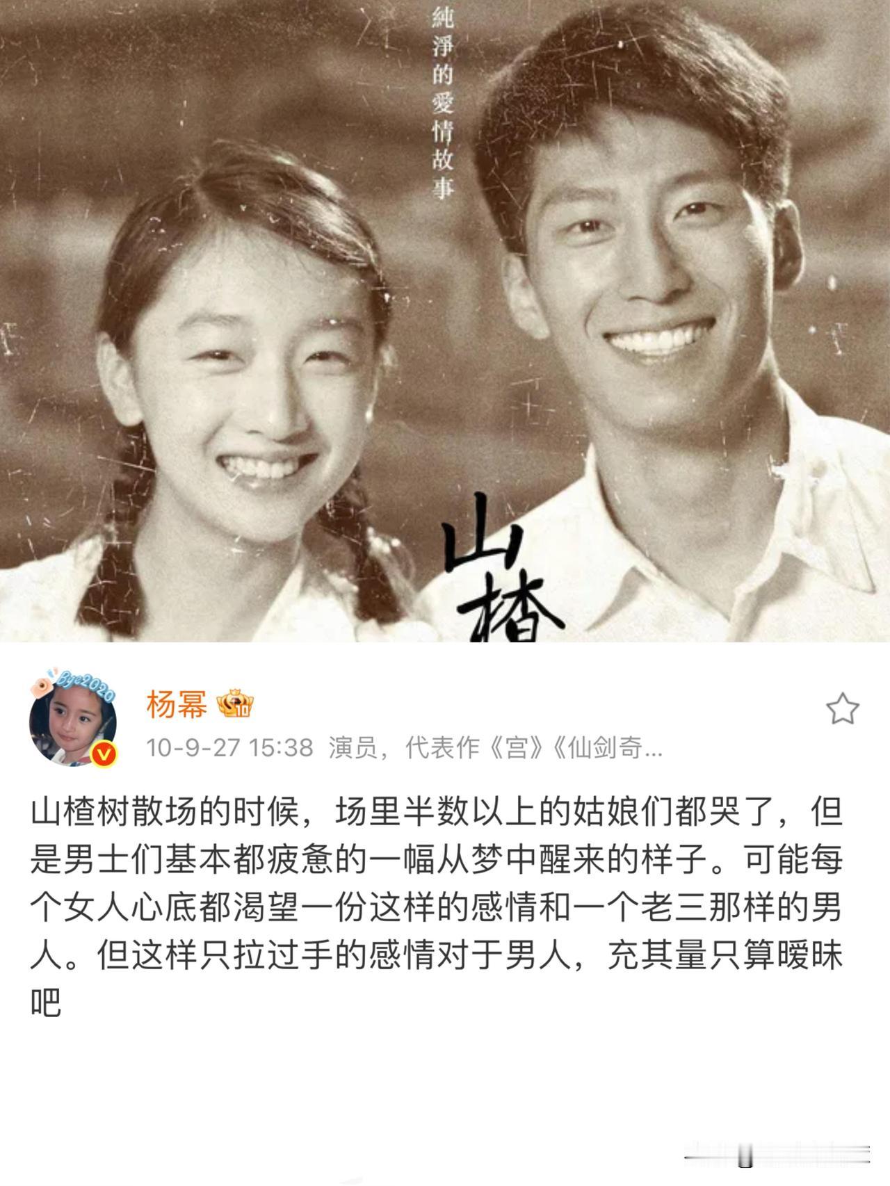没人能在爱情里全身而退,即便她是杨幂。 从杨幂说得这段话能看出来,她的思想真的很超前,也很会思考。可这么清醒的杨幂也会为了爱情奋不顾身,可是得到的又是什么呢。我一直认为,她就算没有当演员,她也会是她选择的其他行业中的佼佼者,她太有灵性太聪明了,她早期微博的活人感特别强。感觉她后面就很累很疲惫然后很迷茫,不知道s没有之前能思考了,还是看清现实了。