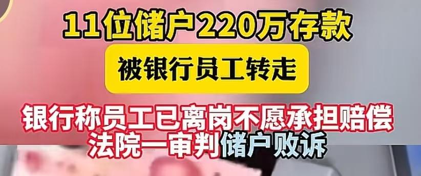 还有这种事吗,内蒙古女子存款75万,和柜员说的清清楚楚是定期,存单也仔细核对了没问题,但是半个月女子急需用钱去取时才发现,75万已经全被取走了,而且同样情况的一共有11人,一共220万都被转走,当储户去询问银行,被告知这是员工自己的事,和银行没关系,而且员工已经离职联系不上了!储户当场懵了,这不是你们的员工吗,怎么出了事你们不管了呢,最后那个员工被找到了,但是钱已经被他挥霍一空,储户于是起诉银行赔偿,但是一审储户竟然败诉了,这也太让人懵逼了吧,目前二审还在审判中,不知道储户最后能不能把钱追回来!