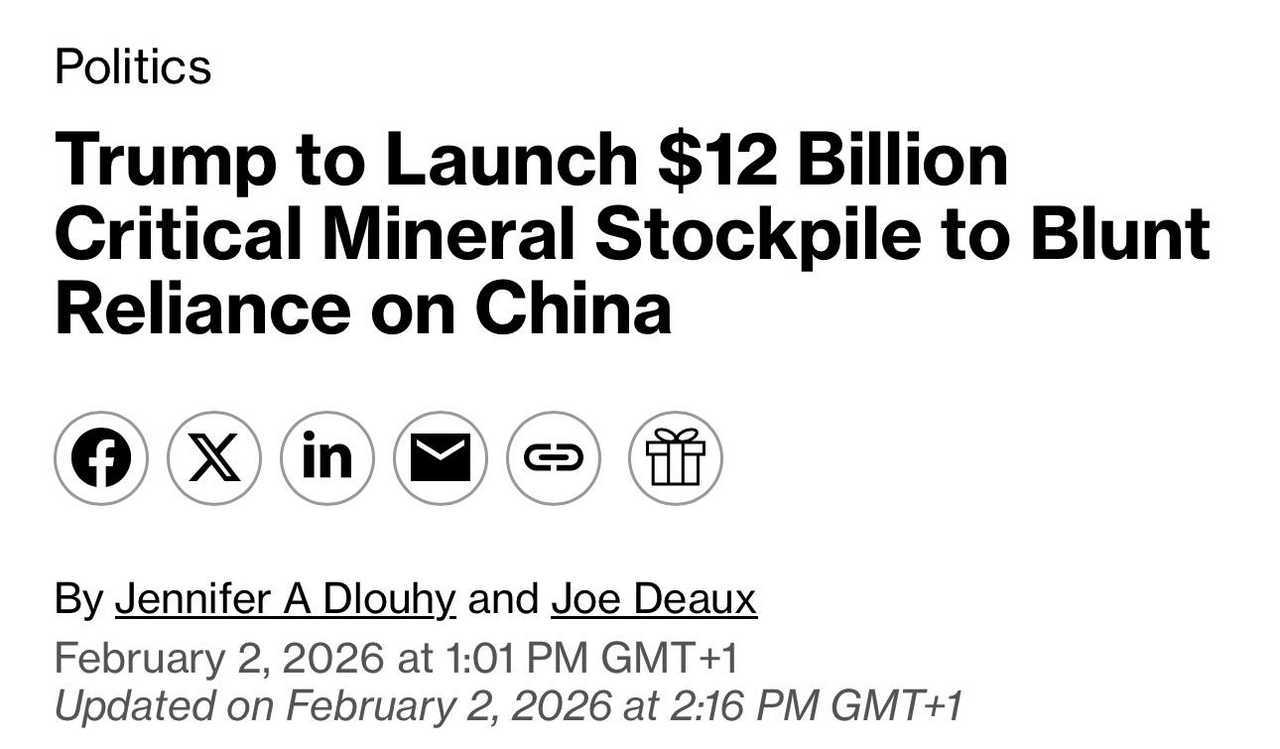 据彭博社报道,特朗普总统计划启动一项由120亿美元资金支持的战略性关键矿产储备计