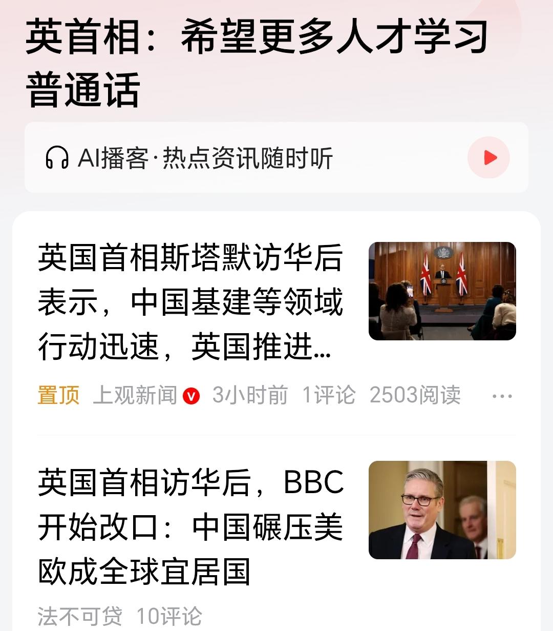 现在不傲慢了?形势比人强。英国不再是那个日不落帝国,甚至不是大英帝国了,只是小英王国。英首相:希望更多人才学习普通话现在才开始希望更多的人学习中文,似乎已经掉队了。那些精明的资本家早在20年前就已经让自己的孩子背诵“床前明月光,疑是地上霜。举头望明月,低头思故乡”了。 100年之后,世界会有英普、法普、德普、意普、美普…… 普天之下,莫非王土。 点右上角关注我,我们一起去看这个魔幻的世界