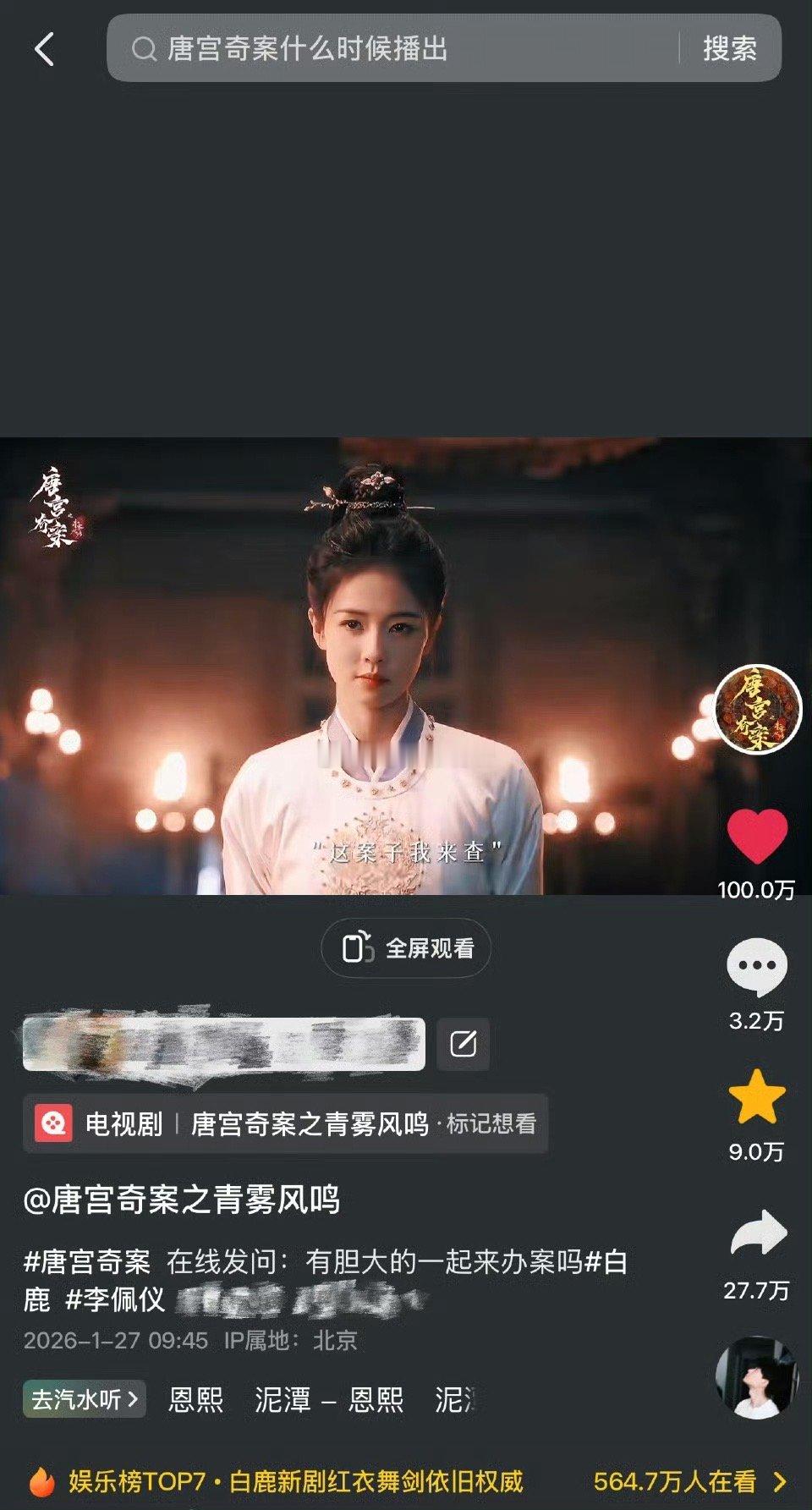 白鹿粉丝准备了近14w☁️包场,邀请大家来看唐宫奇案,诚意好足