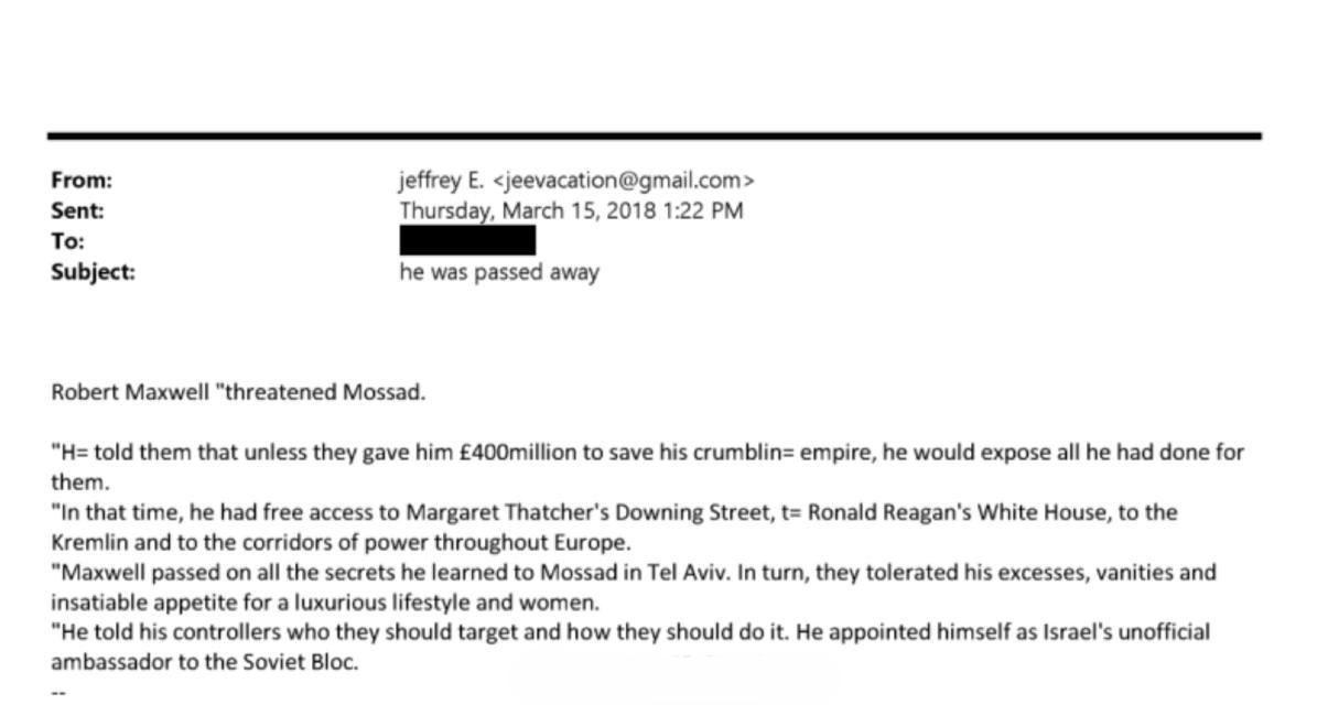 在2018年3月一封主题为“他去世了”的邮件中,杰弗里·爱泼斯坦(美国亿万富翁,1953年1月20日-2019年8月9日)详细描述了吉斯莱恩的父亲罗伯特·马克斯韦尔在去世前如何威胁摩萨德,并敲诈该机构4亿英镑。 罗伯特后来在驾驶游艇前往加那利群岛途中神秘失踪。他先是失踪,随后被发现漂浮在大西洋上,当局推测他很可能是意外落水溺亡。 “罗伯特·马克斯韦尔威胁过摩萨德他告诉他们,除非他们给他4亿英镑来挽救他摇摇欲坠的商业帝国,否则他将揭露自己为他们所做的一切。当时,他可以自由出入玛格丽特·撒切尔的唐宁街官邸、罗纳德·里根的白宫、克里姆林宫以及欧洲各国权力走廊。 马克斯韦尔将他获取的所有秘密都传递给了特拉维夫的摩萨德。作为回报,摩萨德容忍了他的种种放纵、虚荣心以及对奢华生活和女人的永无止境的渴望。 他告诉他的控制者应该攻击谁,以及如何攻击。他自封为以色列驻苏联集团的非官方大使。” 新公布的爱泼斯坦文件还多次提到了IS与“努斯拉阵线”(HTS前身): 1、美国与土耳其政府提前知道斯派克军营大屠杀即将发生,且默许IS在叙利亚巴尔米拉地区扩张以打击阿萨德。 2、“他们”知道希拉里,努斯拉阵线、IS、“基地”、哈马斯等组织的领导人喜欢“donald wild”。 3、2011年美国从伊拉克撤军后,美国政府不满什叶派总理马利基,认为IS适合作为伊拉克的统治者。 4、沙特阿拉伯和其它海湾国家一直在支持叙利亚境内的极端组织,包括IS。美国与土耳其则在支持“基地”系的朱拉尼,并承认他们在意识形态上与IS一致。(这是2015年写的) 5、美国国防部曾训练了50名“温和反对派”并将其投入叙利亚,结果他们要么落地成盒,要么直接投了朱拉尼。