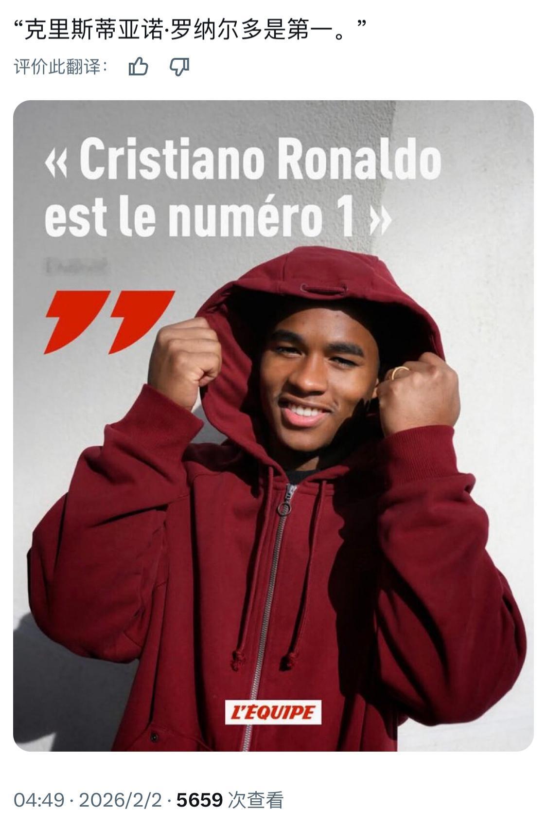 恩德里克 : “克里斯蒂亚诺是第一”