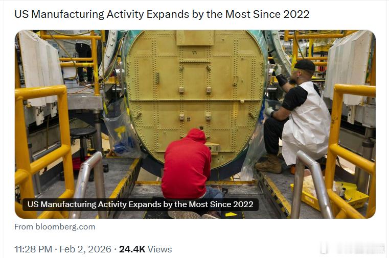 彭博:美国制造业活动在2026年1月重返扩张区间,增速创下2022年以来最快水平,超出所有经济学家预测。
