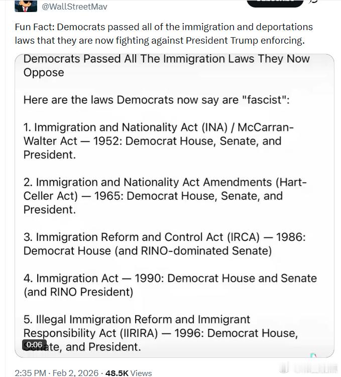 有趣的事实:民左党当年通过了如今他们反对特朗普总统执行的所有移民和驱逐相关法律。