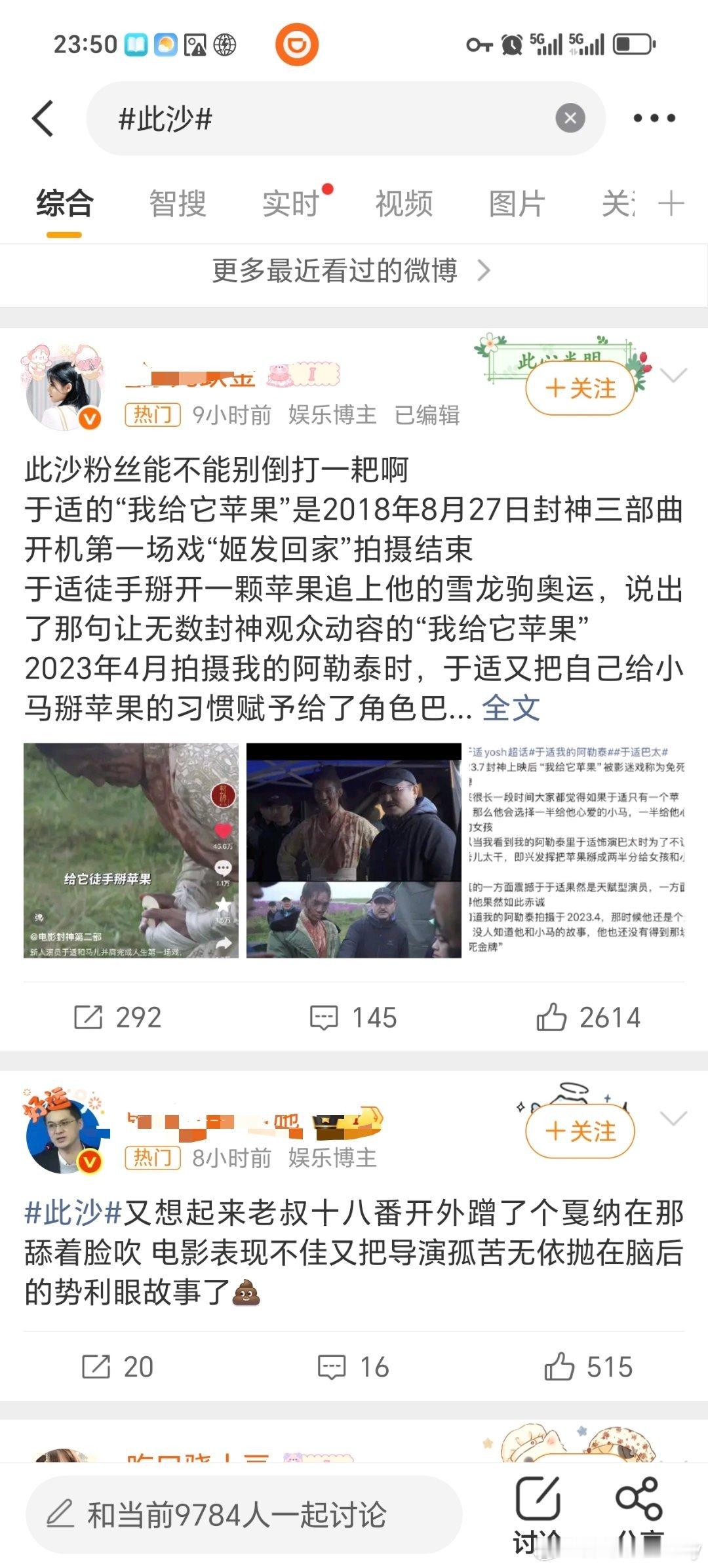 怎么回事?此沙此沙 gc又被于适于适 粉丝图了,印象中于适粉丝不惹事不怕事,怎么突然和此沙粉丝热议起来了?