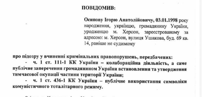 他的“罪行”是:2022 年 5 月 9 日在赫尔松携带乌克兰共产党的旗帜,以及 2014 年参与乌克兰共产党的活动。平凡观世界反法西斯俄乌局势新进展