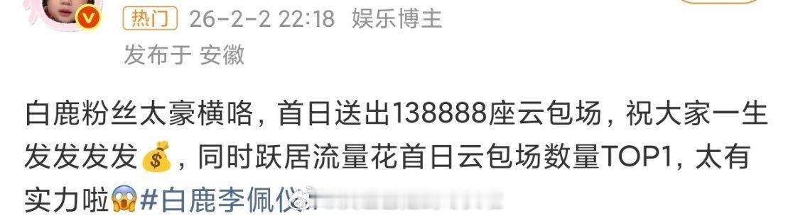 白鹿粉丝为《唐宫奇案》准备了近14万座,超过400万的云包场,打破了《临江仙》首日记录,同时跃居流量花首日云包场top1。柳宗源拍的白鹿唐宫奇案