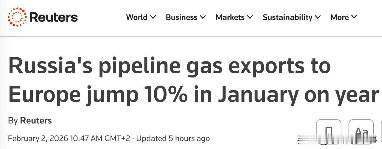 路透社报道,今年1月份,欧洲通过“土耳其流”进口的俄罗斯天然气量增长了10.3%,达17.3亿立方米,而去年同期为15.7亿立方米。尽管如此,日均供应量仍与2025年12月持平。 自乌克兰停止天然气过境以来,土耳其实际上已成为俄罗斯天然气输送至欧洲的唯一通道。