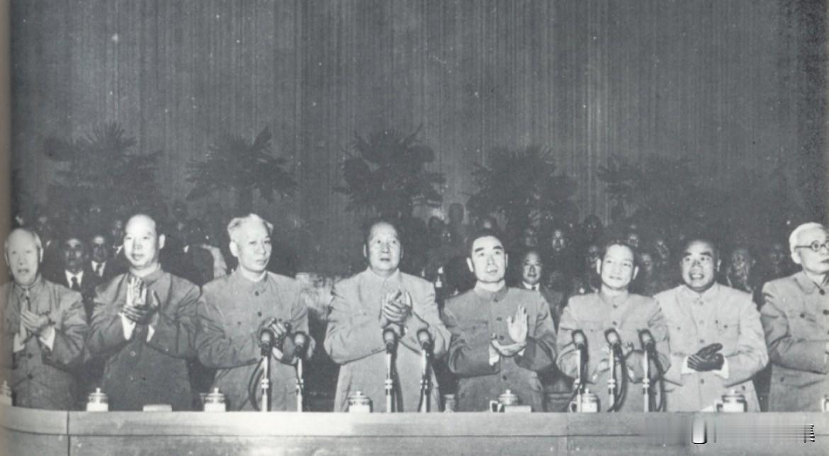 1956年9月27日,中共第八次全国代表大会闭幕。主席台前排左起:董必武、彭真、刘少奇、毛泽东、周恩来、陈云、朱德、林伯渠。这次大会之所以被称为“群贤毕至”,是因为它具有特殊的历史意义:这是新中国成立后召开的第一次全国代表大会,大会选举产生了新的中央委员会,既有毛泽东、朱德等革命元老,也有一批德才兼备的新人进入中央委员会。