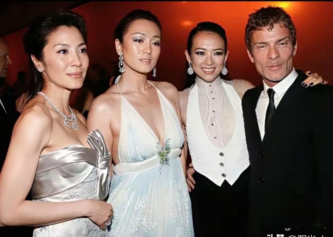 仔细看,左边是细眉飞扬的杨紫琼,左二是 秀韵多姿的巩俐,左三是明眸善睐,温婉如莲的章子怡,3人气场爆棚,气质一个比一个好,一个比一个有魅力!而右边这位卷发男生是谁?看他蓝眼睛,黄头发,西装笔挺的,能与杨紫琼、巩俐、章子怡一起合影真是不简单!他也是演员吗?有谁认识他?