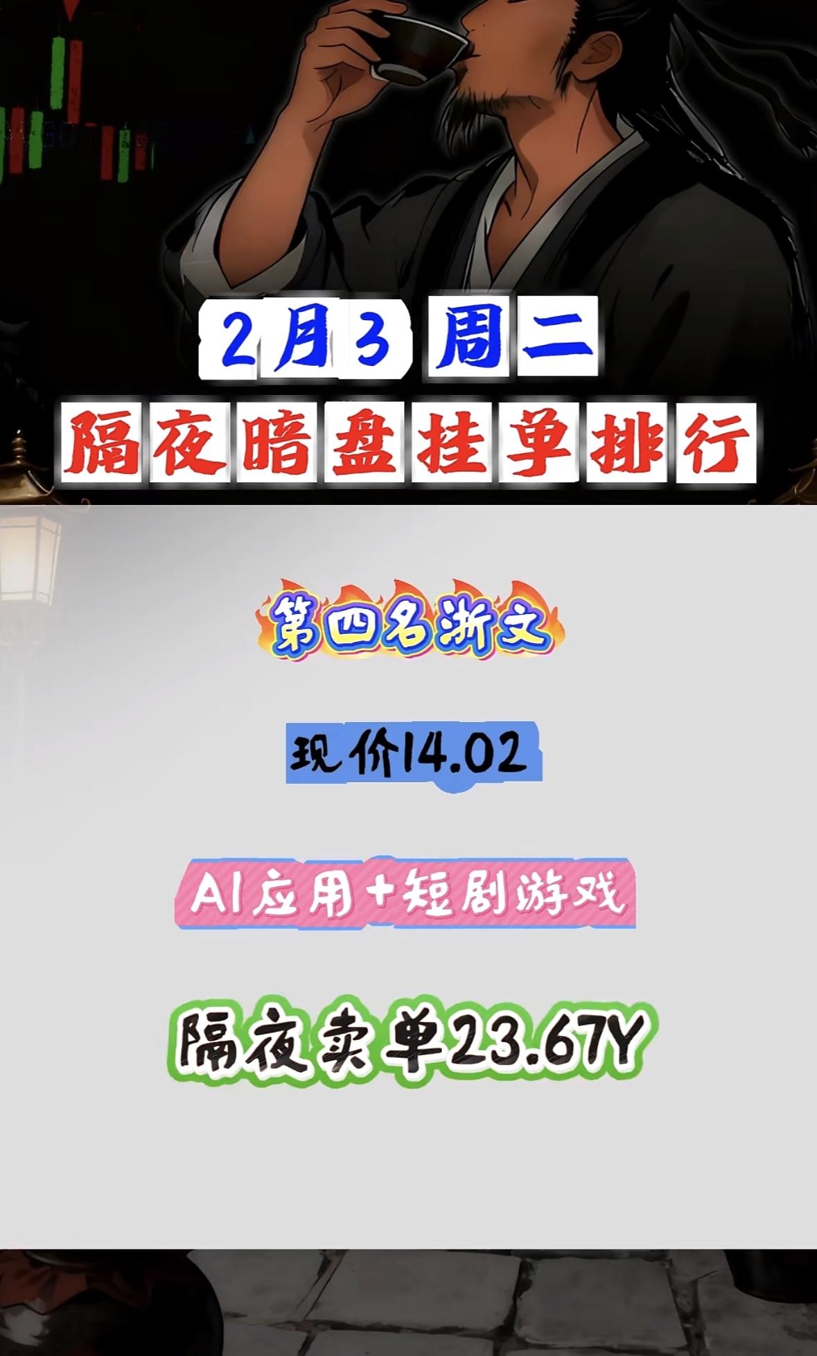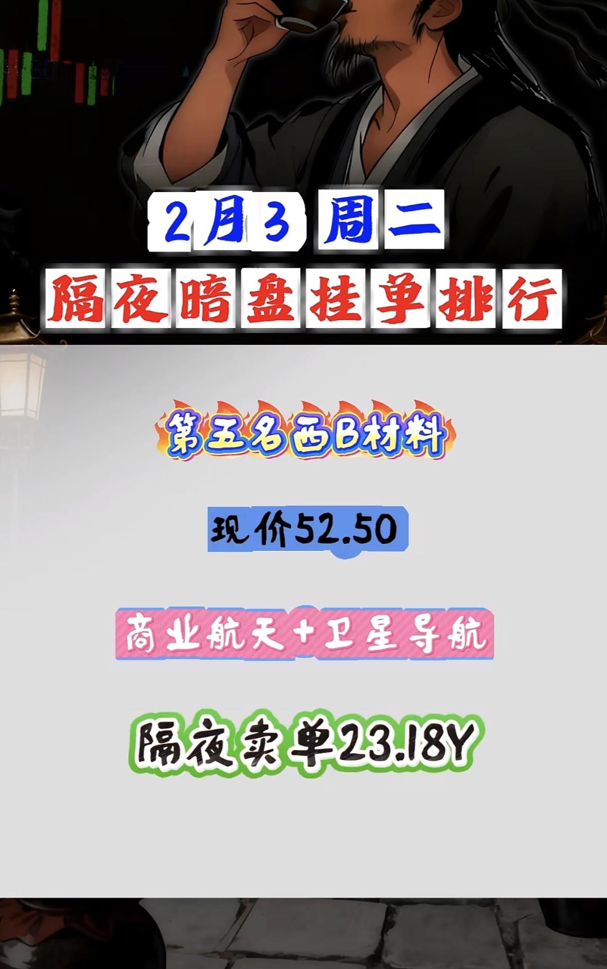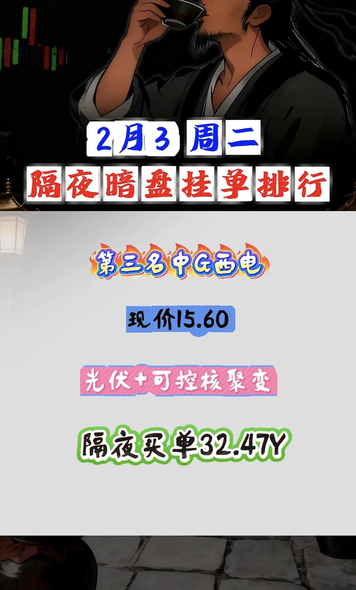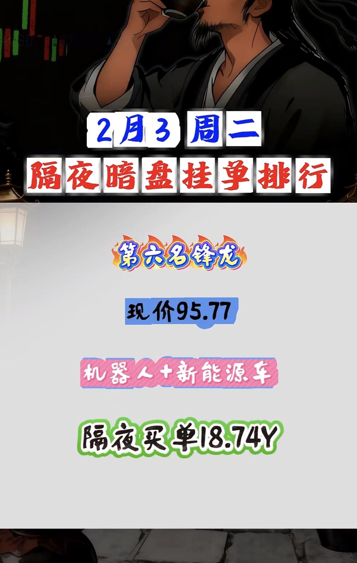 2月3日隔夜暗盘挂单,利欧领航。 "皇台白酒乡村振兴概念受捧,隔夜买单近六亿现价稳升" "皇台白酒概念股现价17.52,乡村振兴题材受捧,隔夜买单超5亿"