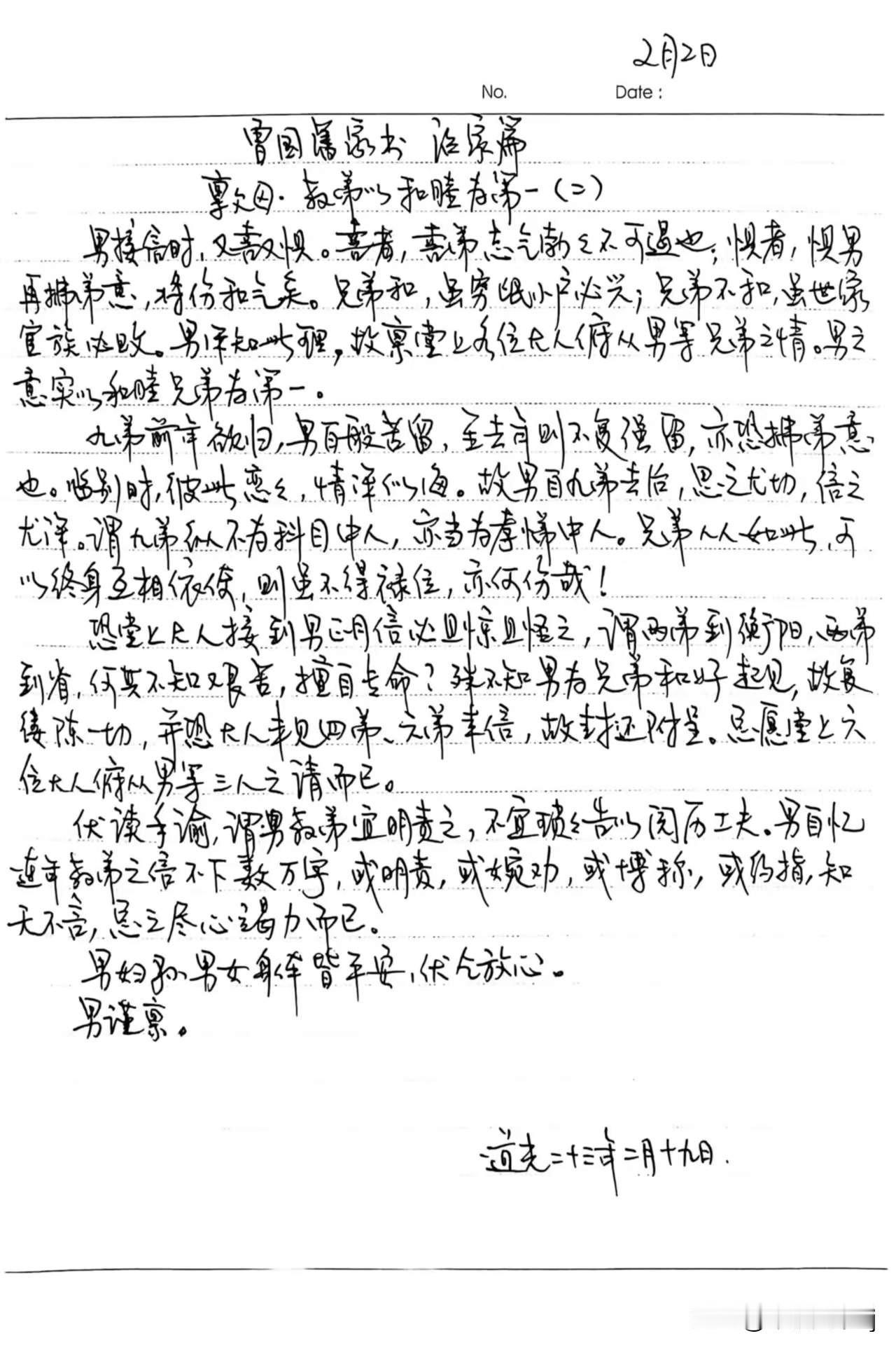 家庭共读并抄书第50天:《曾国藩家书》治家篇 禀父母.教弟以和睦为第一(二) 兄弟和,虽穷氓小户必兴; 兄弟不和,虽世家宦族必败。