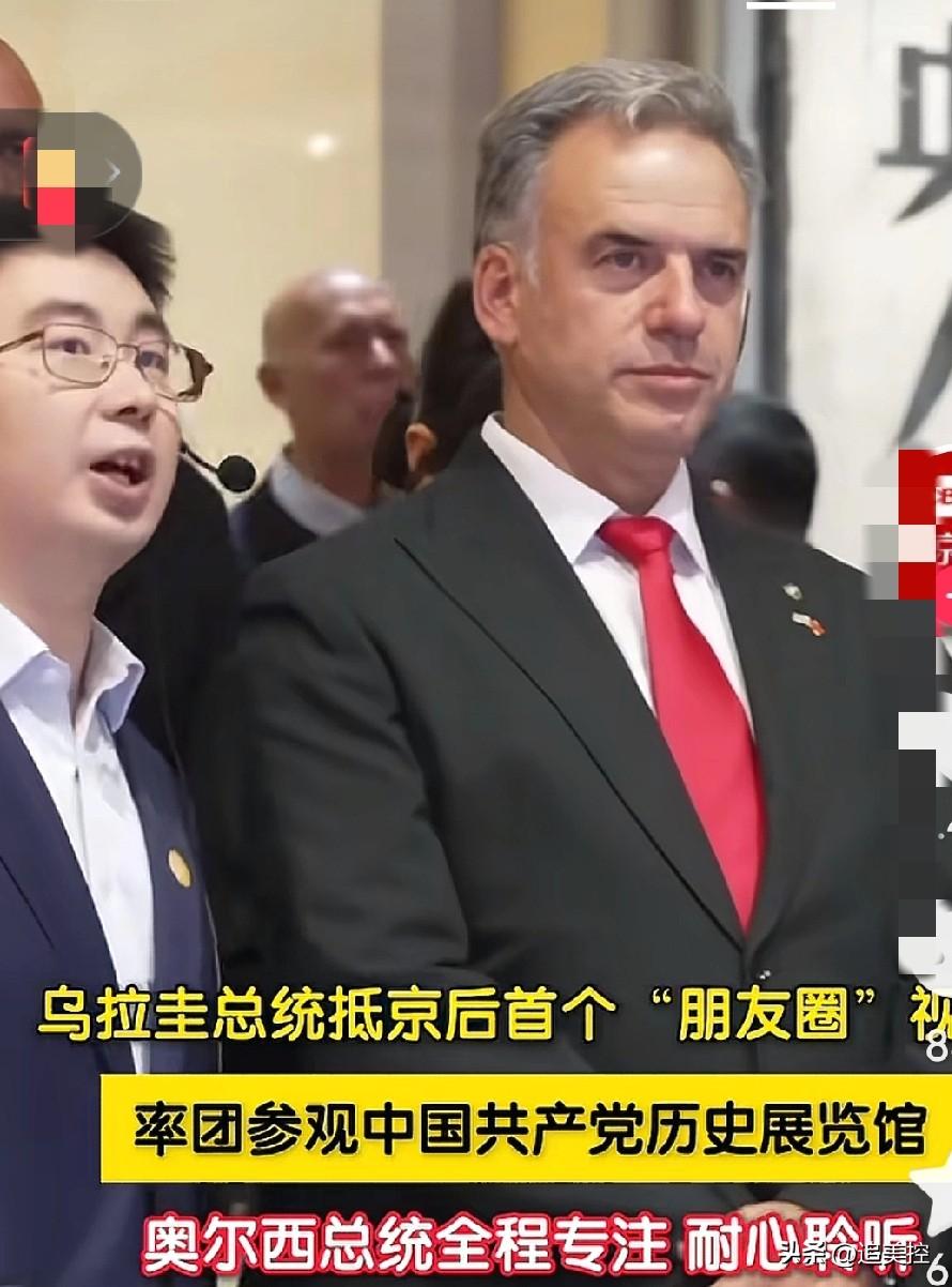 乌拉圭总统奥尔西到京后的首波朋友圈视频火爆刷屏。 他首先到访中国共产党历史展览馆。 看到各个阶段各个时期共产党革命奋斗的图片视频实物展示,能看得出来它是认真聆听时,他脸上露出是深沉思考的表情,由衷佩服的微笑。 南美拉美加勒比地区的国家,很需要在今天再反殖民化,彻底推翻帝国主义的枷锁,否则很难把国家建设好。 我们不输出革命,但我们共产党为民服务,为国崛起的精神需要各国政党对标学习。