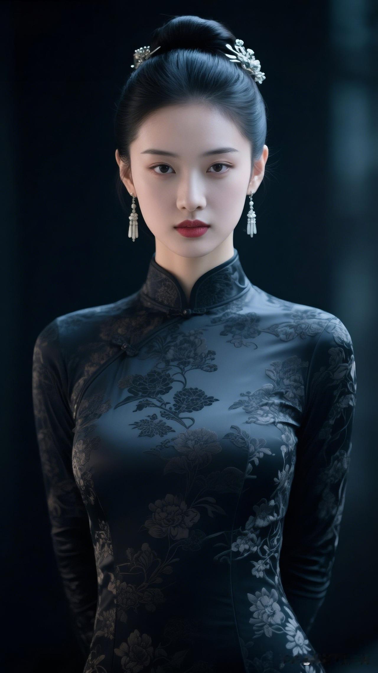 东方古典之美,一袭黑纱旗袍,尽显优雅气质。旗袍怎么样拍照有韵味