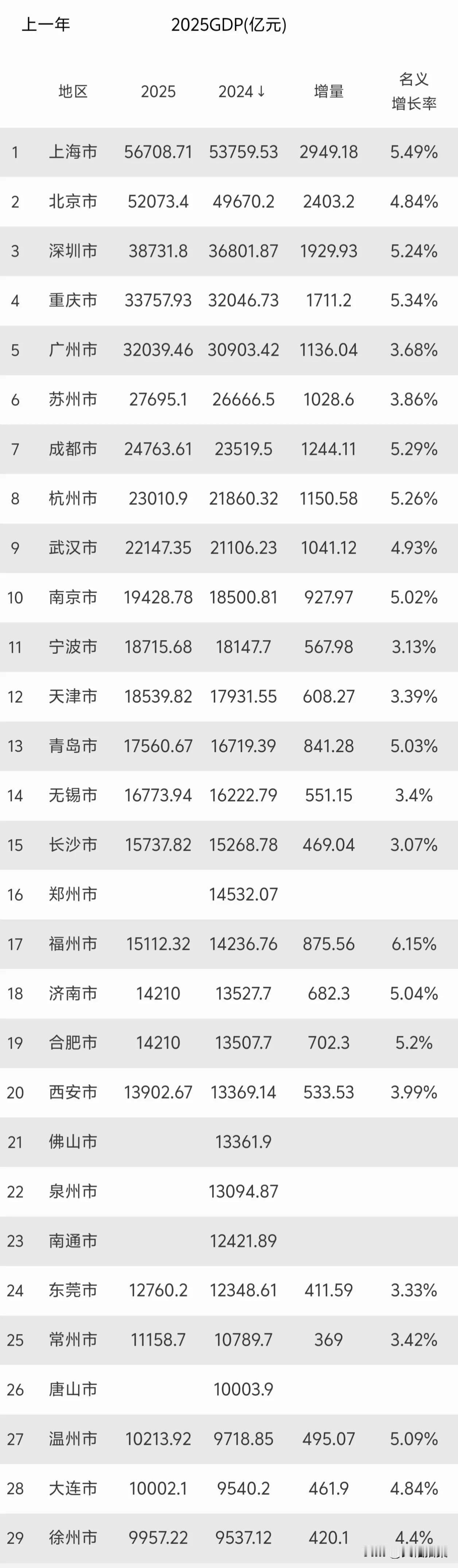 2026年全国万亿GDP城市分布,又是一年一度的“环江西”时刻。 全国有29个GDP破万亿的城市,绝大部分都在江西周边。南昌2025年GDP只有8000多亿,想要破万亿五年之内很难如愿。 一步慢步步慢,等到南昌破万亿,周边各省几乎又有2万亿体量了。目前,长沙、福州、合肥都是1.5万亿以上,五年之后他们破两万亿,南昌才破万亿。全国GDP排行 2025gdp 全国GDP区域 城市Gdp GDP排名 国内万亿城市