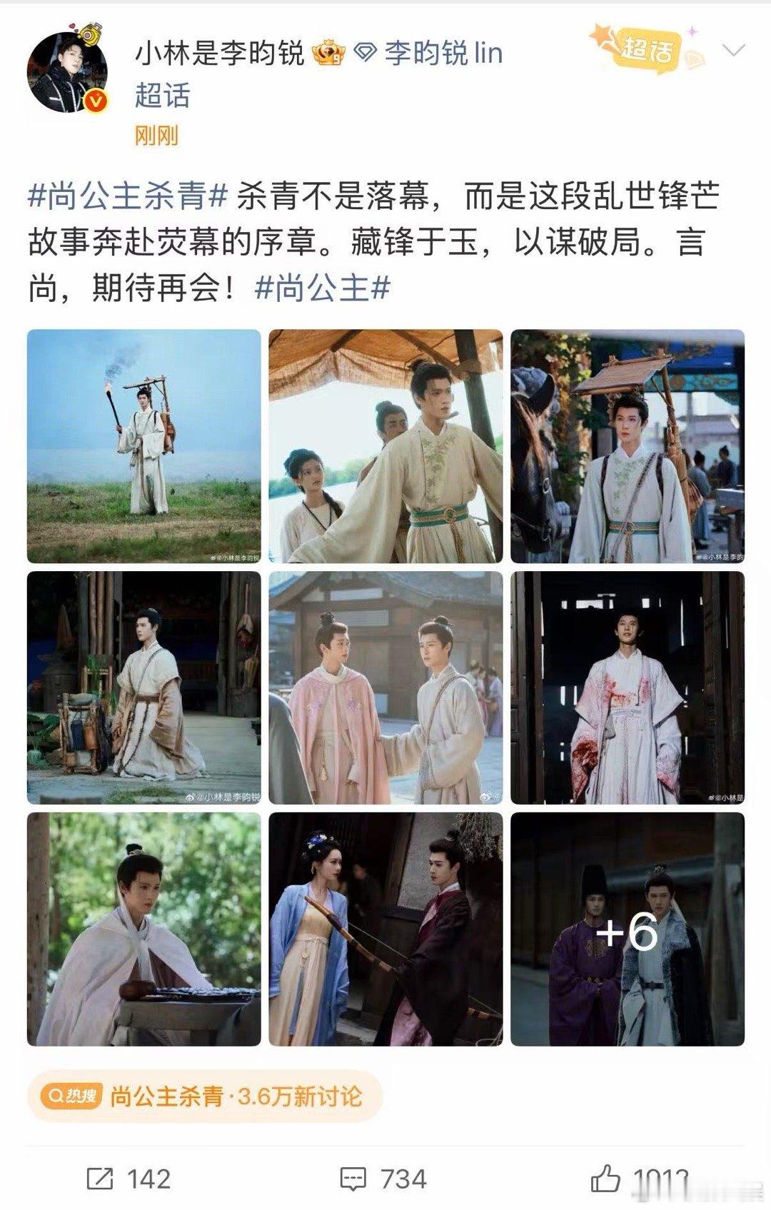 李昀锐杀青发文李昀锐尚公主杀青不是落幕李昀锐尚公主杀青不是落幕,杀青发文,好耶