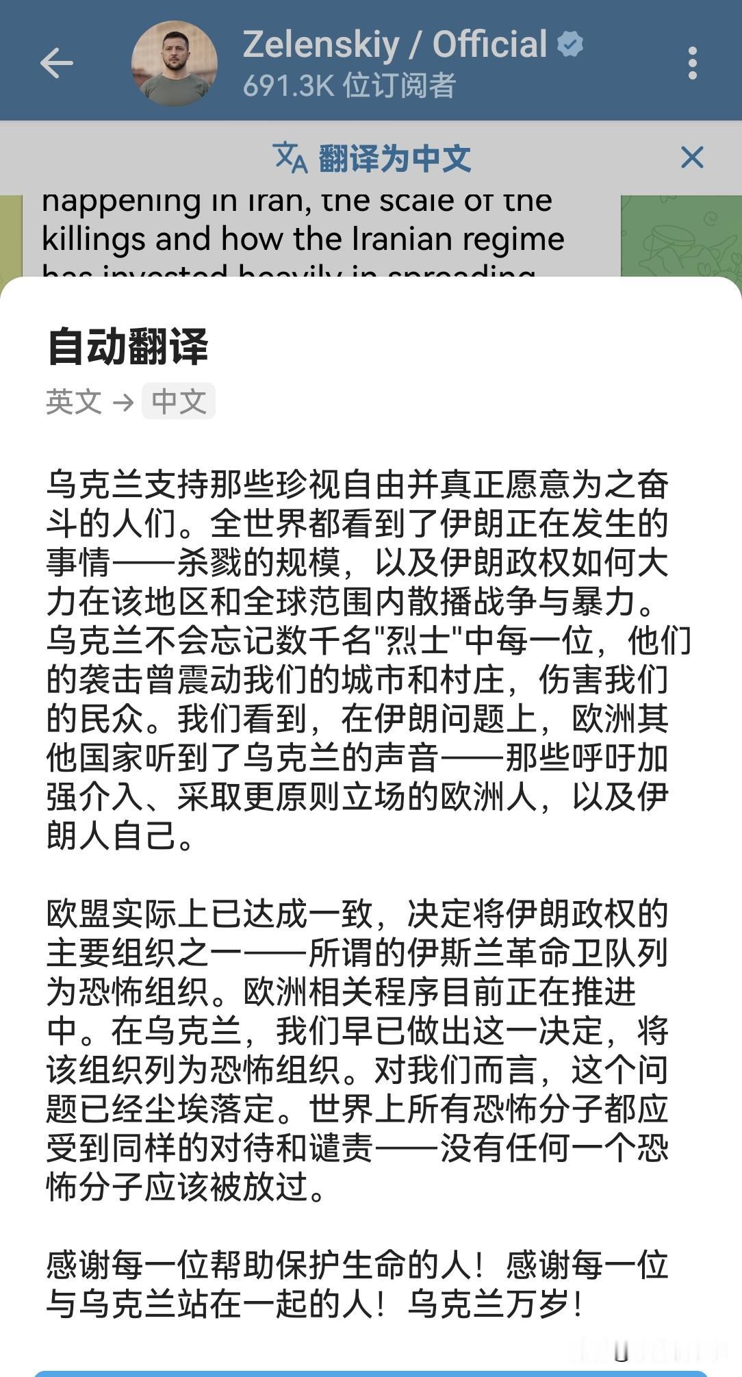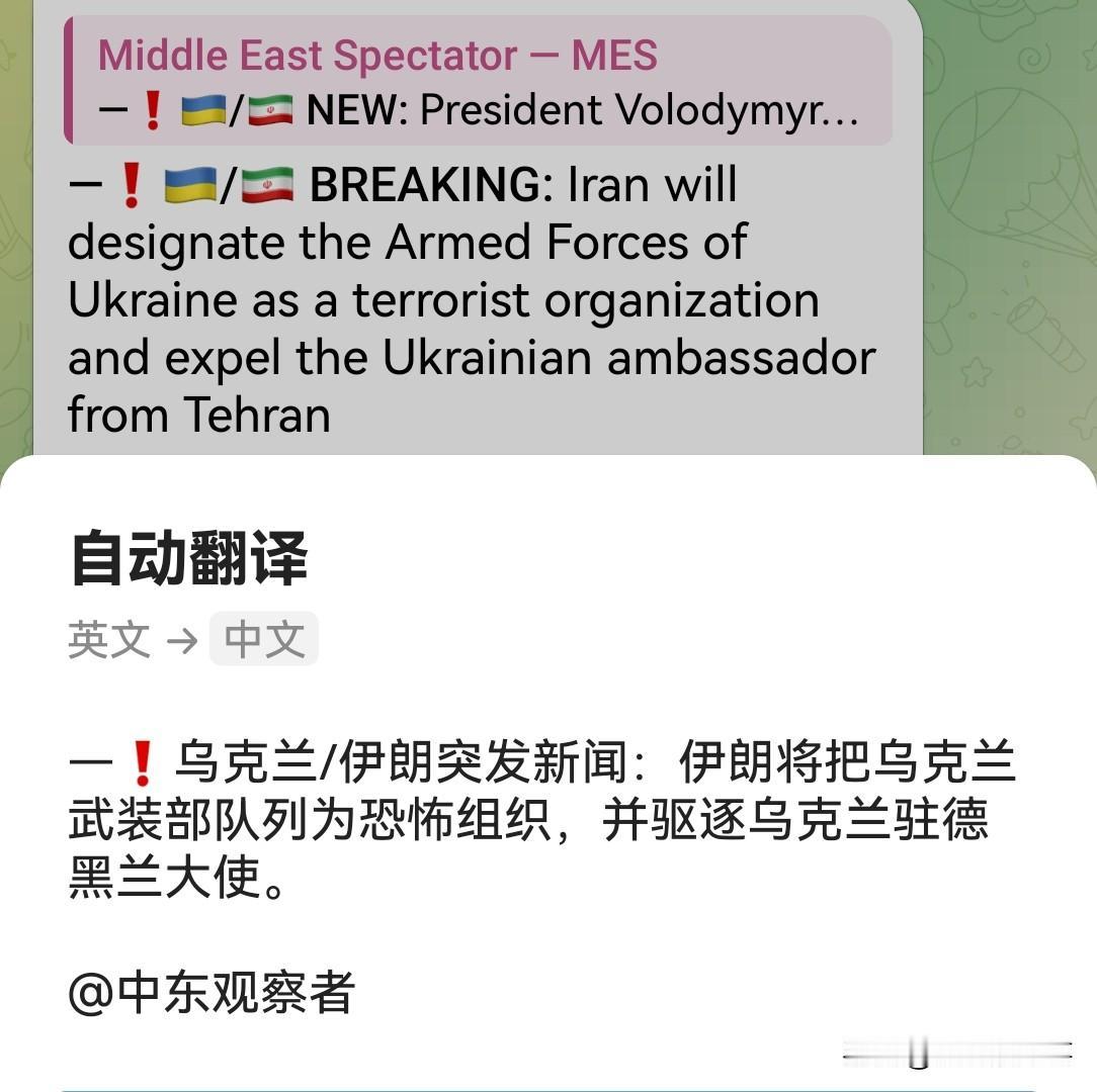 继欧盟以后,乌克兰总统泽连斯基也宣布将伊朗伊斯兰革命卫队为恐怖组织。 作为回应,伊朗将把乌克兰军队列为恐怖组织,并驱逐乌克兰驻伊朗大使。