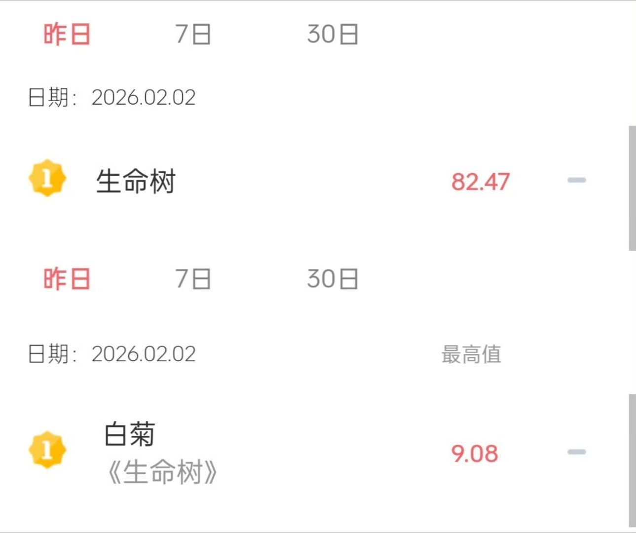 生命树官配恭喜杨紫白菊生命树V榜均新高保持登顶