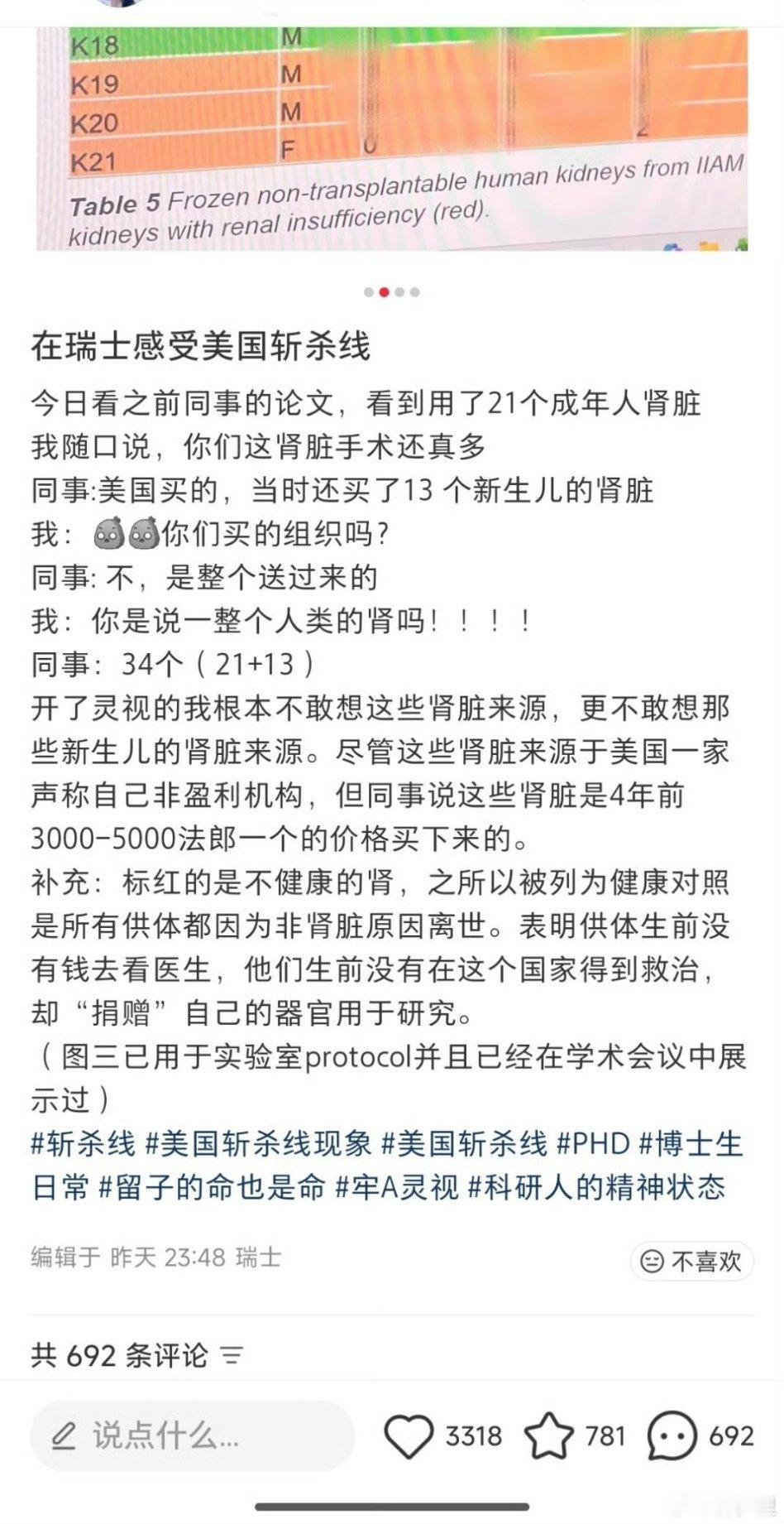 在瑞士感受到了美国斩杀线小红薯发出“在瑞士感受到美国斩杀线”的贴主,就是说肾脏的那个,被开盒,被开除了。