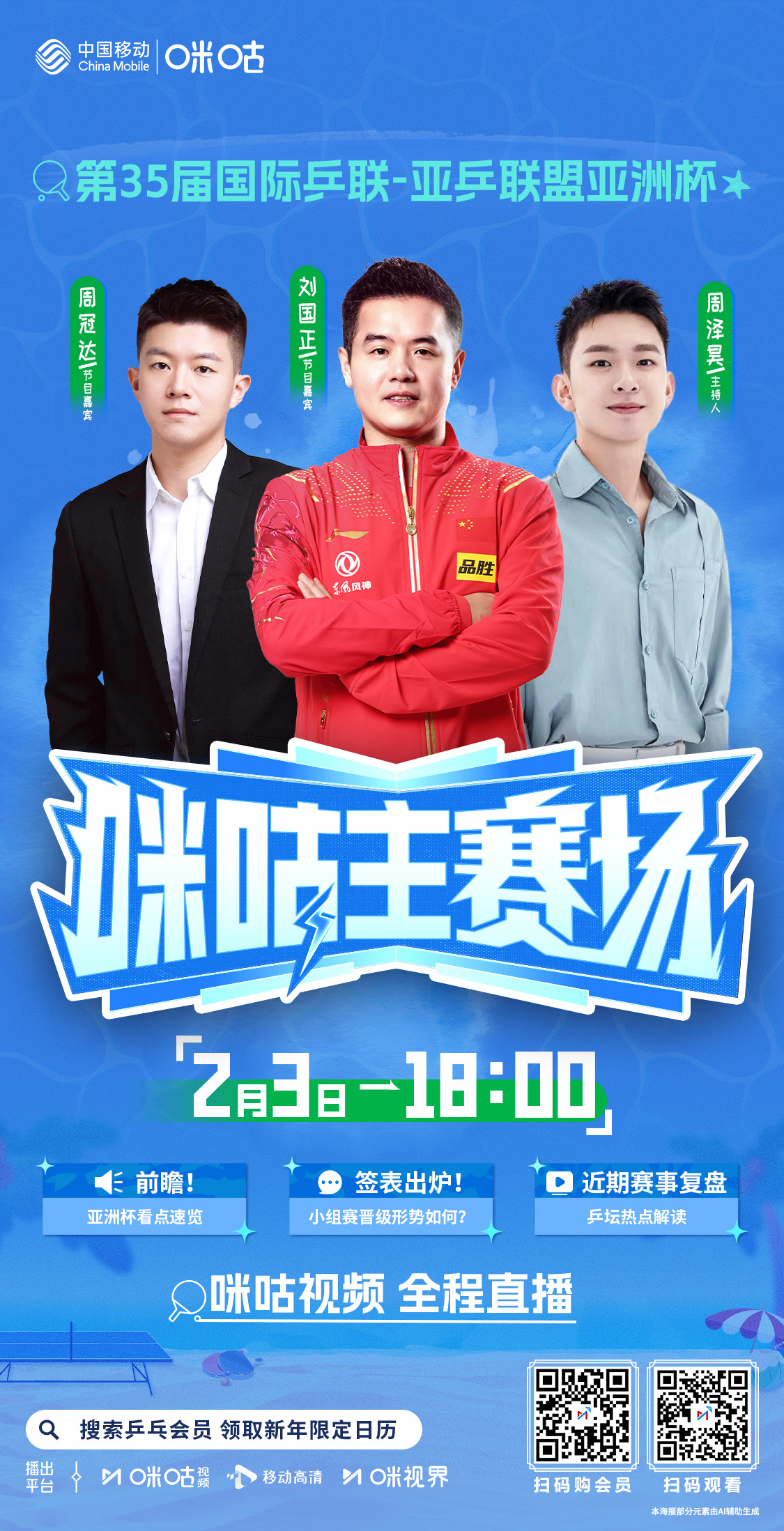 2026乒乓球亚洲杯咪咕主赛场📢 亚洲杯明日开赛📢👀 赛事看点、签表分析超前瞻🔔 今晚18:00 咪咕视频直播👉 网页链接