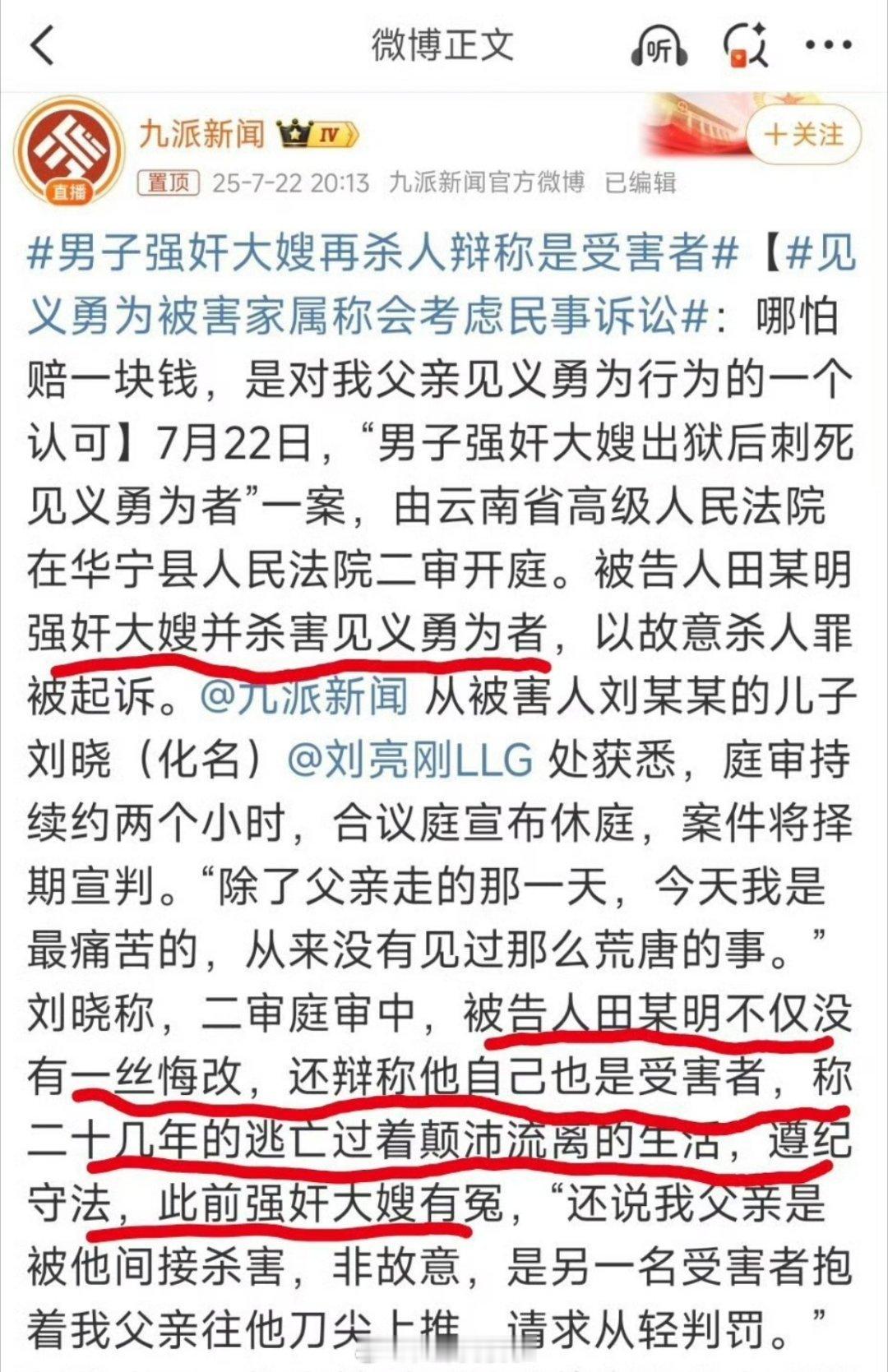 男子强奸大嫂出狱后又刺死见义勇为者案。