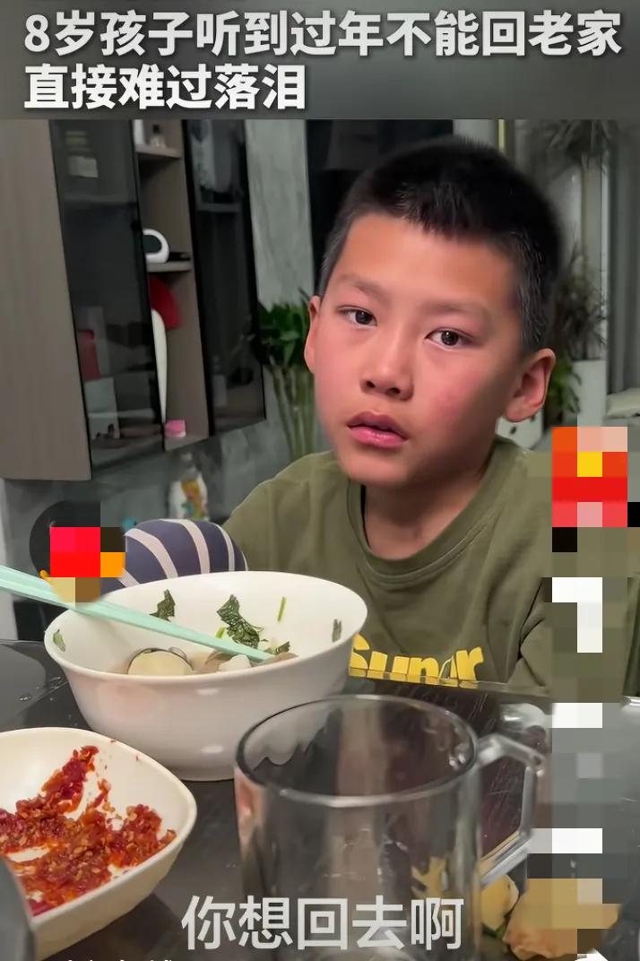8岁娃哭着要回老家:我们早把过年过反了 刷到8岁男孩听说不回老家过年,当场掉眼泪的视频,我鼻子一酸——这哪是孩子闹脾气,分明是在给我们这些成年人上课啊! 大人们总在算:回家要花多少路费、买多少年货、走亲戚要包多少红包,把团圆变成了一笔精打细算的账。可孩子眼里的过年哪有这么复杂?他哭着要回的,是想看看生病的太奶奶好没好,是要去老太爷墓前说说话,是记挂了一整年的、最纯粹的牵挂。 我们总说“在哪过年都一样”,却忘了孩子心里,老家不是地理坐标,是有温度的念想。那些我们觉得麻烦的奔波,在孩子那是盼了365天的期待;那些我们嫌费钱的团圆,其实是给孩子童年存下的“情感底气”。 别总用现实当借口了,孩子的眼泪多直白啊——过年从来不是比排场、算开销,是见想见的人,守该守的情。你家孩子过年最盼着回老家的啥?评论区聊聊呗!