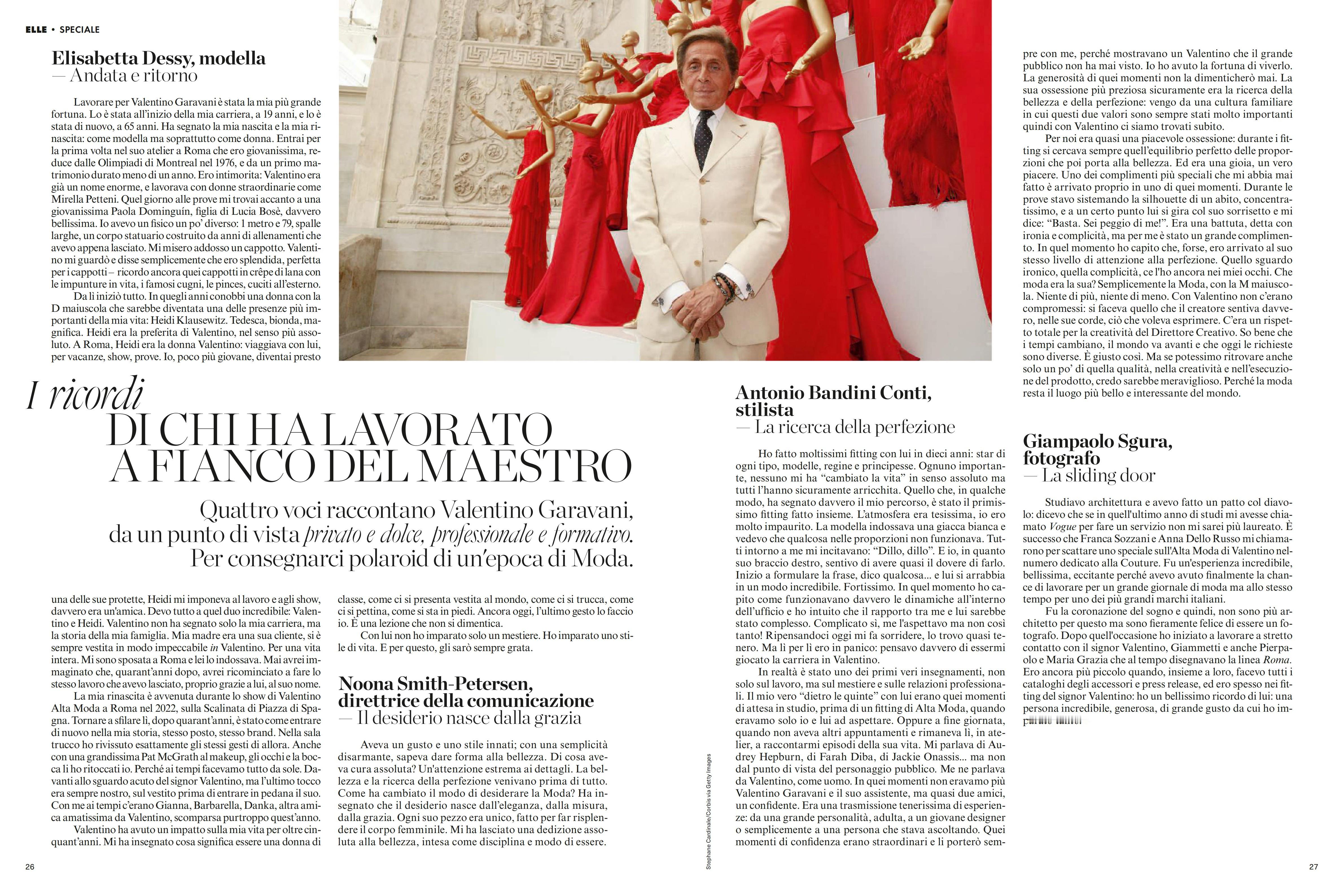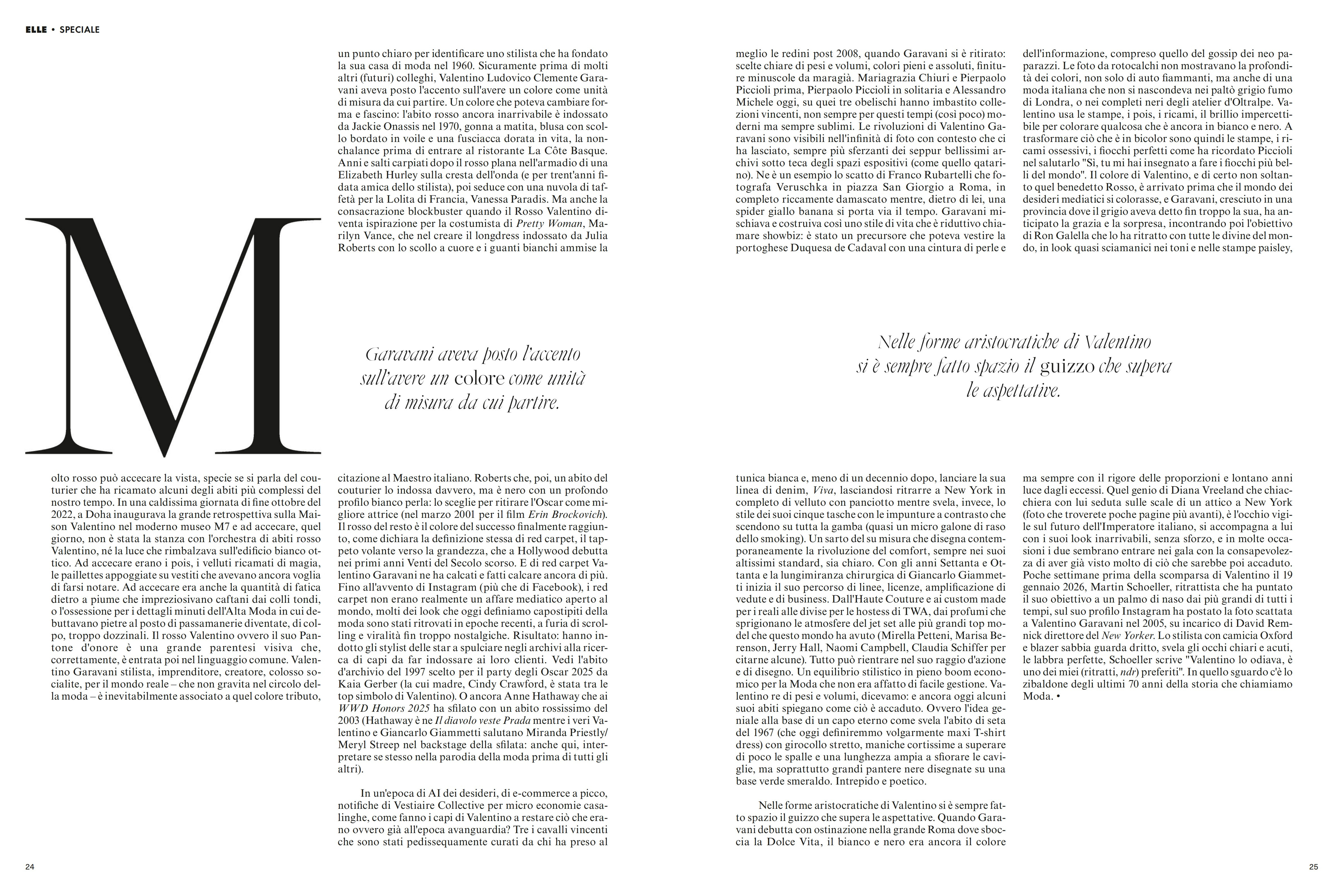 意大利 ELLE 也在新一期内容里为本土行业巨匠 Valentino Garavani 先生的离世制作了一组 24P 的超长篇幅专题 ,以此表达纪念之意 .