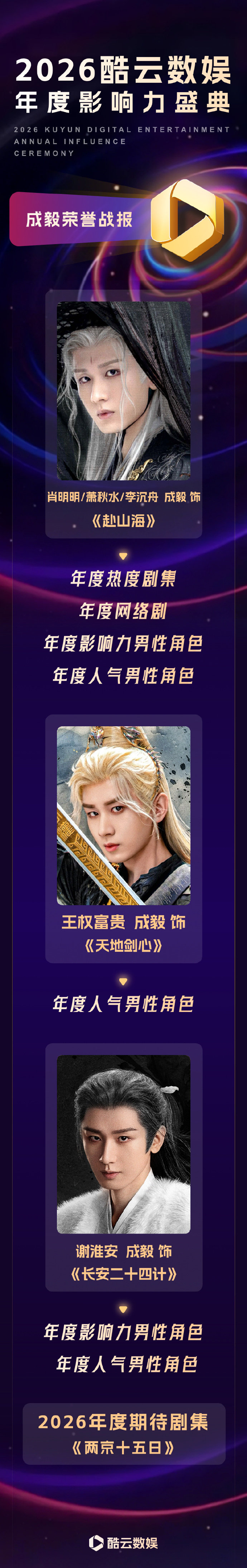 成毅2026酷云战报成毅26年度酷云荣誉战报 成毅酷云战报 获得多项荣誉!