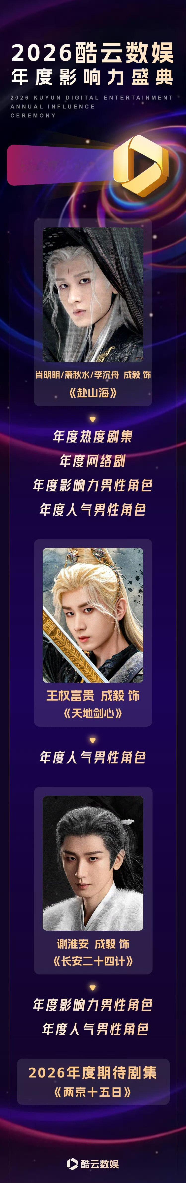 成毅酷云战报恭喜成毅 在2026酷云数娱年度影响力盛典中获得多项荣誉!剧集《赴山