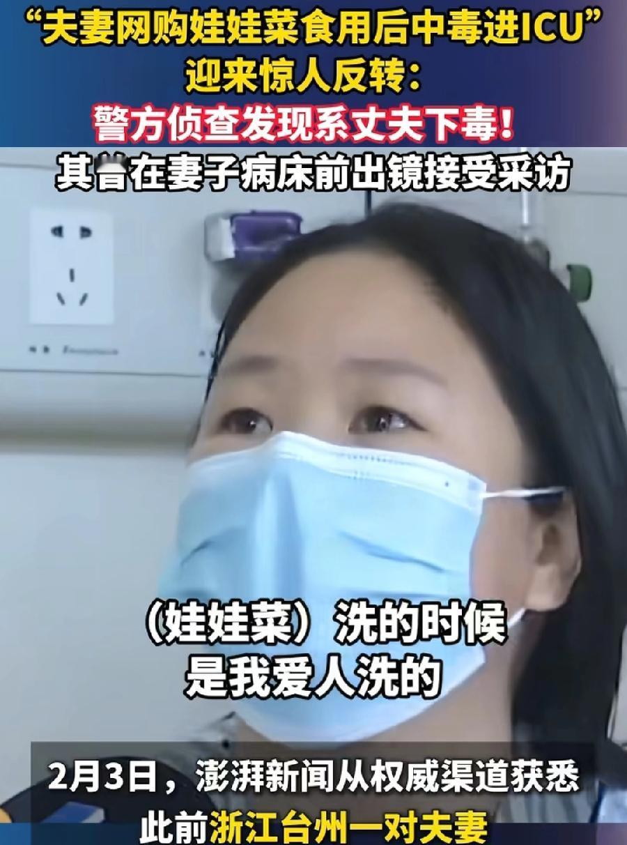惊天反转!夫妻娃娃菜中毒,丈夫投的毒!天呐,这也太狠了,老鼠药毒害发妻!动机是什么?骗保?有小三?自己也吃了!为了瞒天过海,冒着生命危险!之前侦查外包装报纸有老鼠药,应该丈夫涂在了报纸上,转移侦查方向,心思太缜密了!回头看当时丈夫在医院表情,确实有点不对劲!电视剧里的剧情,走进现实,还是不敢相信!动机到底是什么?看后续!