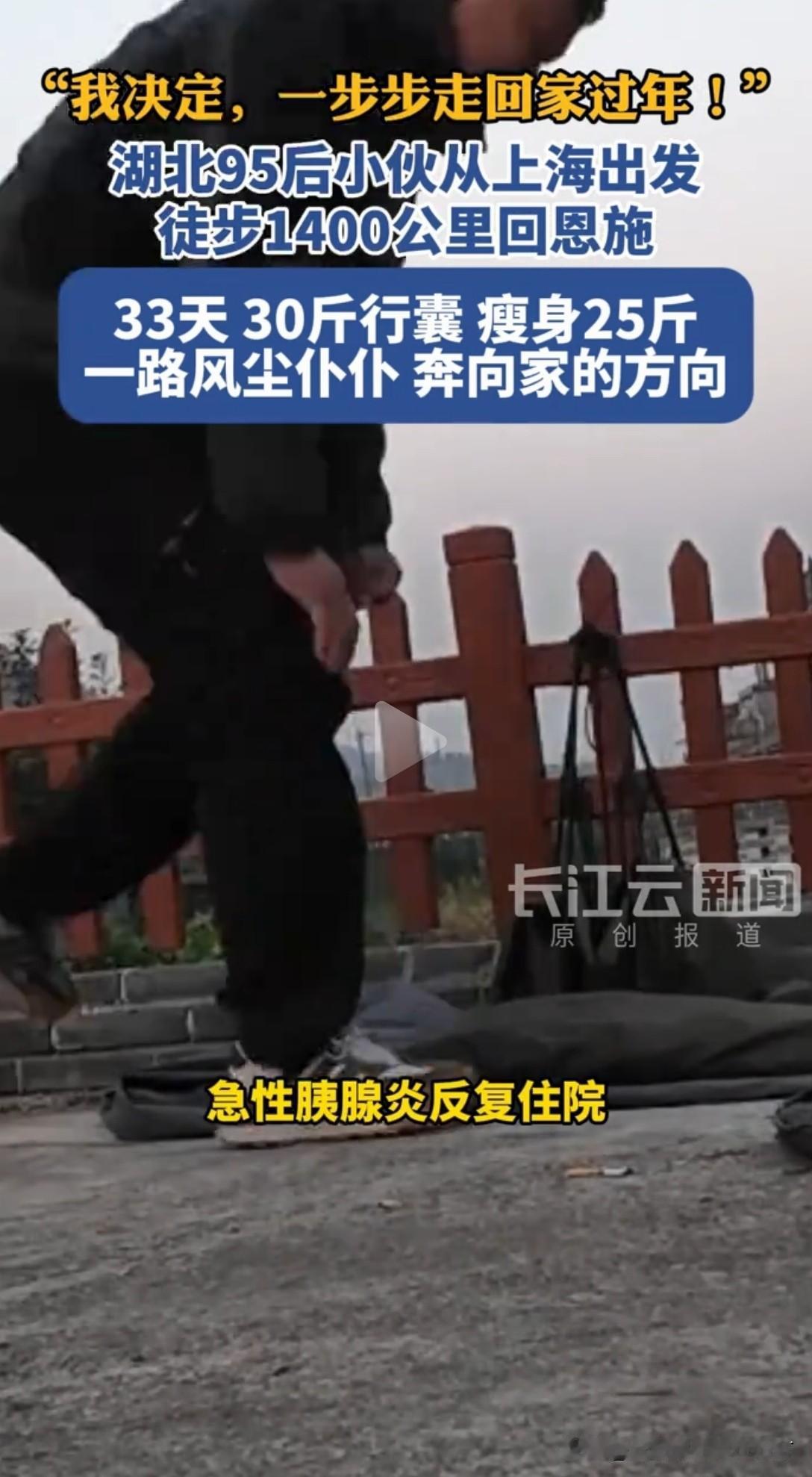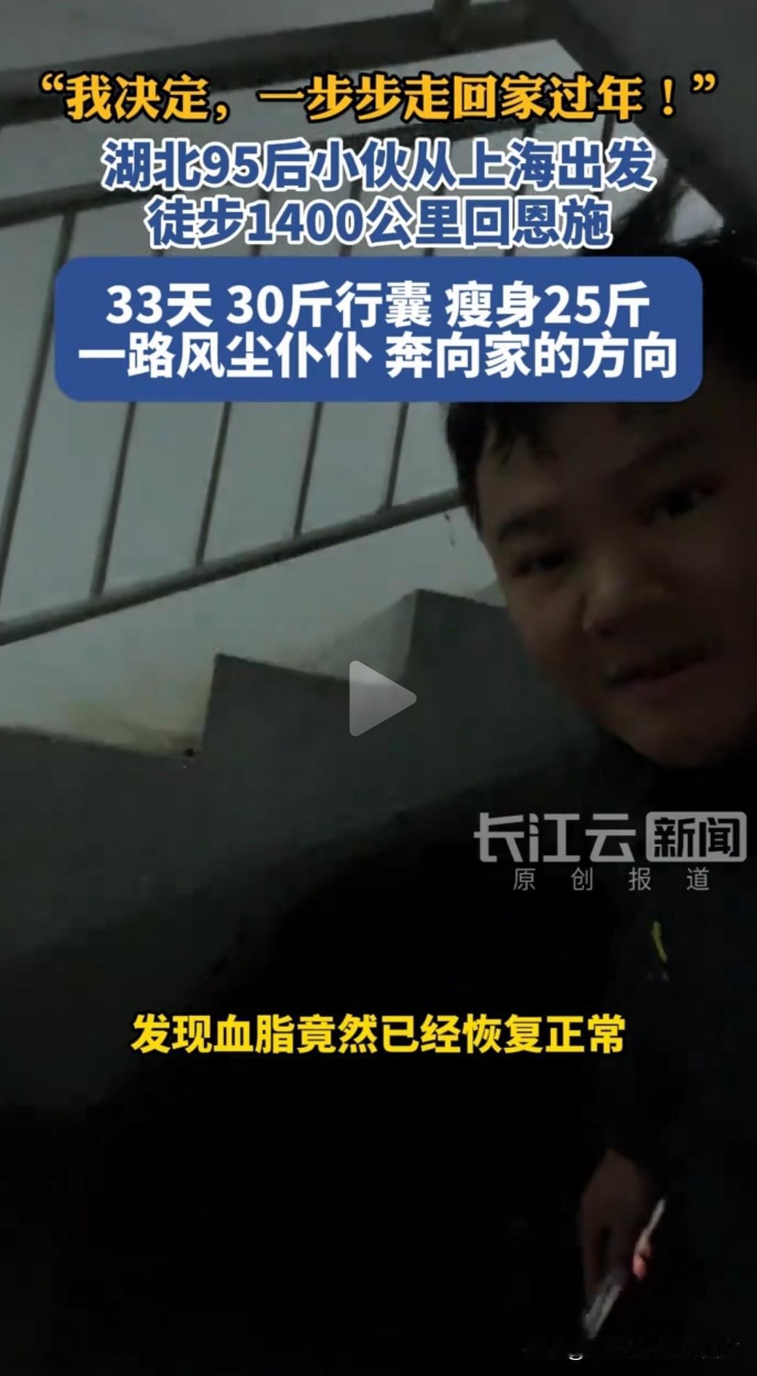 请假徒步1400公里回家过年, 95后小伙用脚步治愈高血脂! 闲人病多,运动才是健康底牌 当年轻人把回家路变成康复路,藏着最朴素的健康真相:哪有什么天生的“闲人病多”,不过是我们把运动的时间,都交给了躺平和拖延。 医生的一句建议,有人左耳进右耳出,有人却用1400公里的脚步,走出了血脂正常的结果,走坏2双鞋的背后,是对自己健康的最认真负责。 走路从不是什么“高端运动”,却是最易坚持的健康捷径。这届年轻人早已看透:与其花钱买保健品,不如用脚步换健康,与其抱怨身体出问题,不如把“动起来”刻进日常。 1400公里的徒步,不仅是一场回家的奔赴,更是一次对“运动即健康”的最好践行——所有的身体自愈,都始于迈出的第一步。 当然也要提醒大家,运动贵在坚持而非逞强,务必量力而行、循序渐进。切忌为了追求效果盲目加码,别让血脂降了,膝盖却伤了,过度劳累反而得不偿失,健康的前提永远是适度。