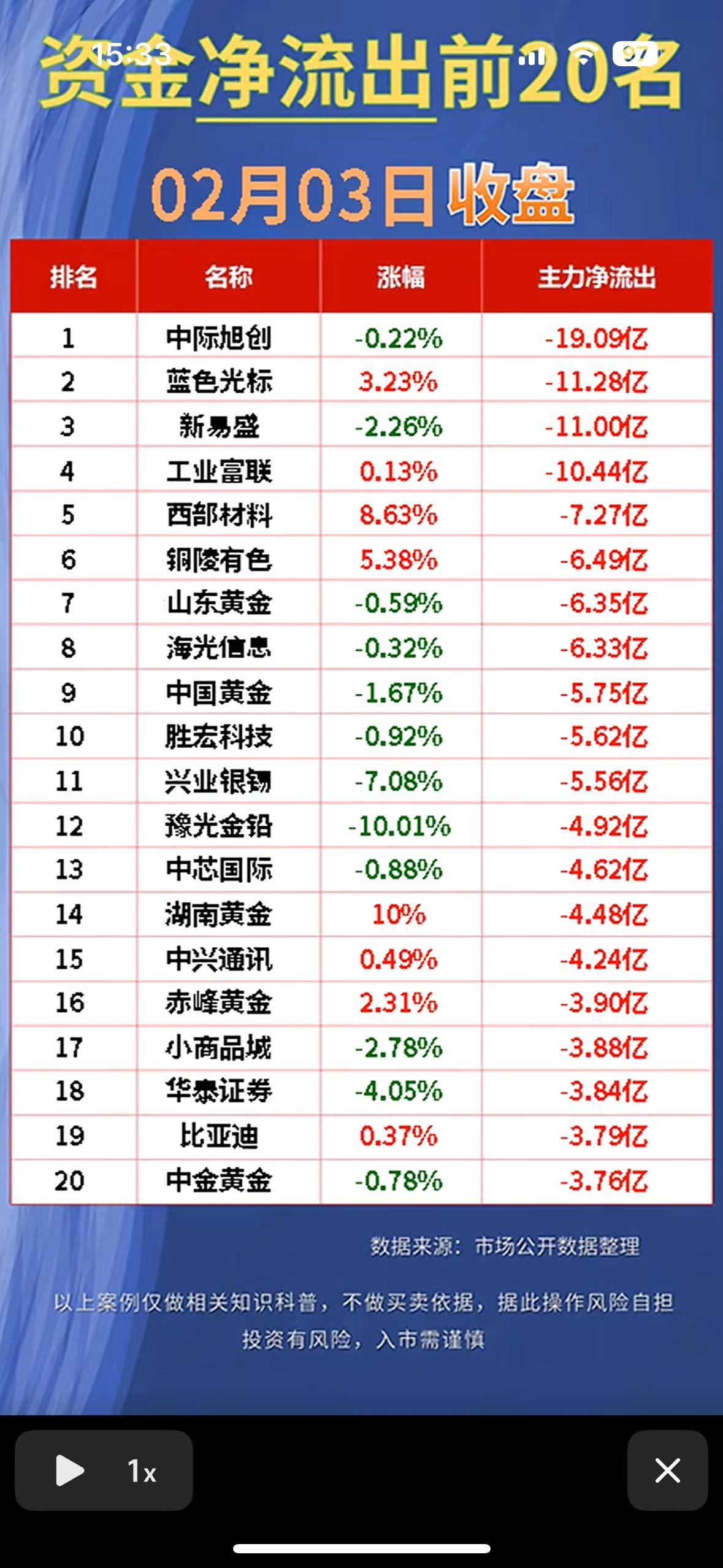 02月03日收盘数据,投资需谨慎! "资金流入龙头榜:茅台信维领涨,科技消费齐