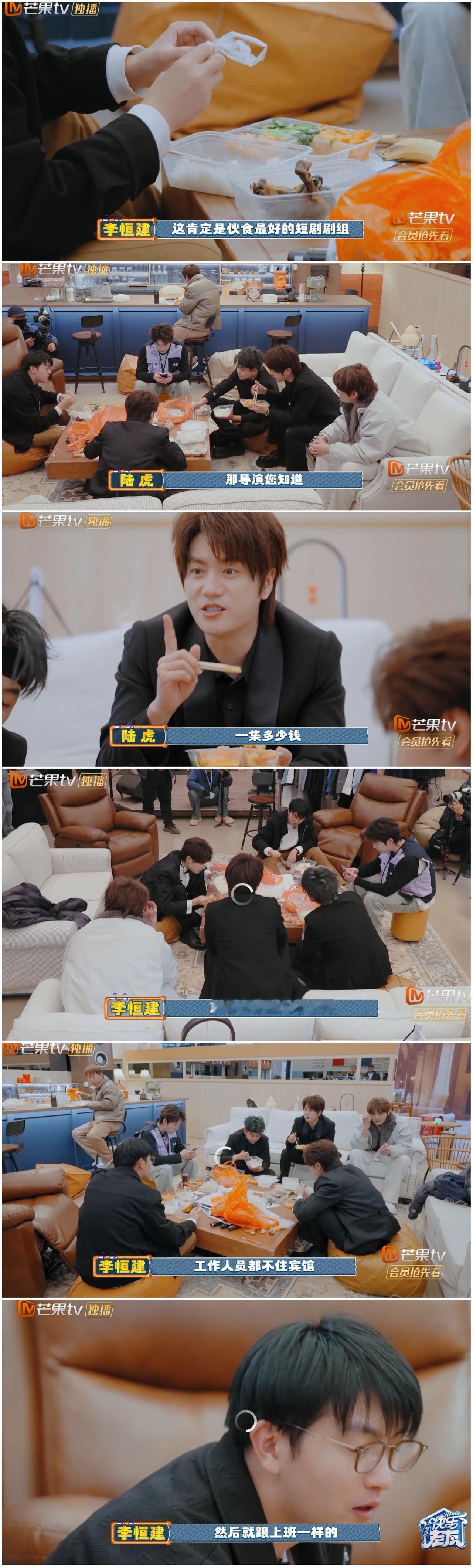 陆虎就这样直接问导演犀利问题, 导演硬是拐弯抹角, 一点都不肯透露。 陆虎他们在丽江拍摄短剧, 在拍摄吃饭盒期间, 陆虎看到导演, 好奇短剧一集拍摄最少多少钱。 短剧导演听罢, 犹豫了一下。 他坦言一般拍摄短剧, 工作人员就像上班那样, 自己住家里, 接近杀青的部分, 会连轴转二十四小时, 就这样持续三天时间, 拍摄60集短剧 需要不到一个星期的时间, 基本控制在五天左右, 一集就一到两分钟。 这个导演就是东拉西扯 就是不说具体的数目, 似乎有什么难言之隐。 不过这个短剧导演 各种诉苦, 强调陆虎他们这个饭盒太好, 一般剧组都没有这样的菜色。 这样看来他们的一集拍摄成本 真的不高, 他就不好意思说出来吧。 短剧一哥柯淳曾爆料日薪两万, 那么五天就是10万。 让网友都以为干短剧的都很赚钱。 其实很多短剧工作者都是 像上班族那样的牛马。