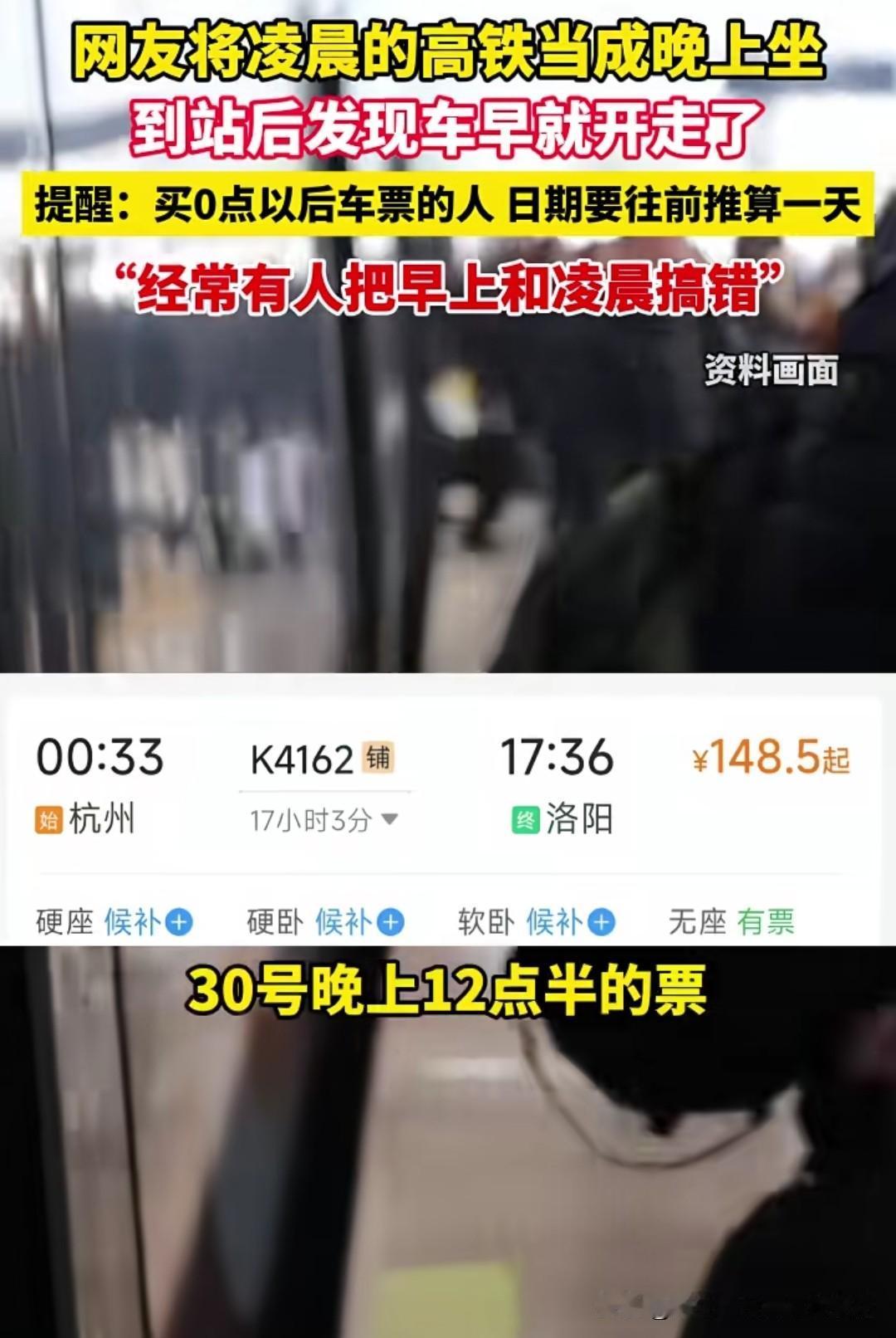 0点以后算第二天,小学生都知道的事,成年人也会弄错吗?有网友吐槽买的凌晨的高铁,然后晚上去坐,结果到了凌晨,日期加了一天,车也提前开走了一天,最后不得不重新买一张票。 有人要纳闷了,30号晚上12点半的票,30号晚上乘车有什么问题吗?最大的问题就是12点整,已经是第二天了,也就是31号了,所以要29号晚上才能赶上车。很多人会说自己昨晚1点才睡,其实是今天凌晨1点才睡的,这就是平时的语言习惯让很多人对时间产生了错判。 所以不要把0点翻译成12点,0点就是0点,一天的时间是从0开始的,不是一点,免得在算时间上会出现计算错误。
