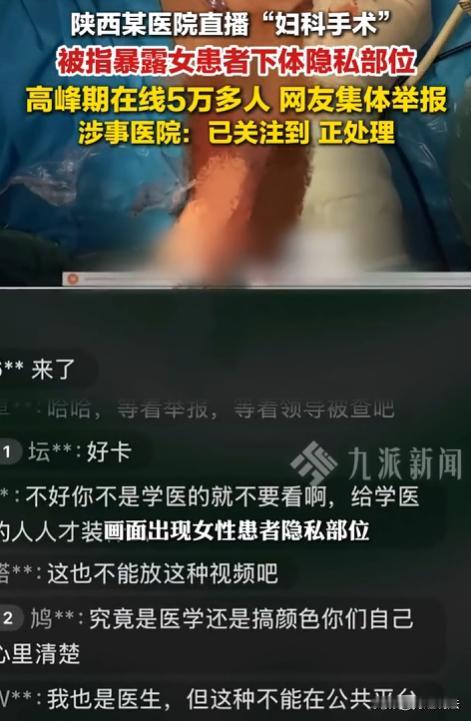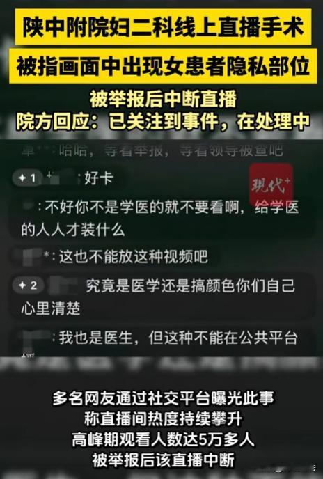 陕西咸阳,一家医院竟直播妇科手术,画面直接暴露患者隐私部位,最多时超50000人