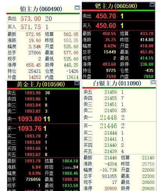 今天是2月3日, 国内贵金属走势明显分化, 白银继续大幅暴跌17%左右; 黄金止跌回升,略微收红; 广期所的钯金和钯金大幅上涨。 通过下图的四拼图,可以明显看出: 白银主力合约下跌16.71%, 黄金主力合约上涨0.63%; 广期所的铂金主力上涨3.54%; 钯金主力合约上涨8.62%。 对于贵金属后市, 期货小褚认为有望继续反弹走强, 白银止跌回升在即!