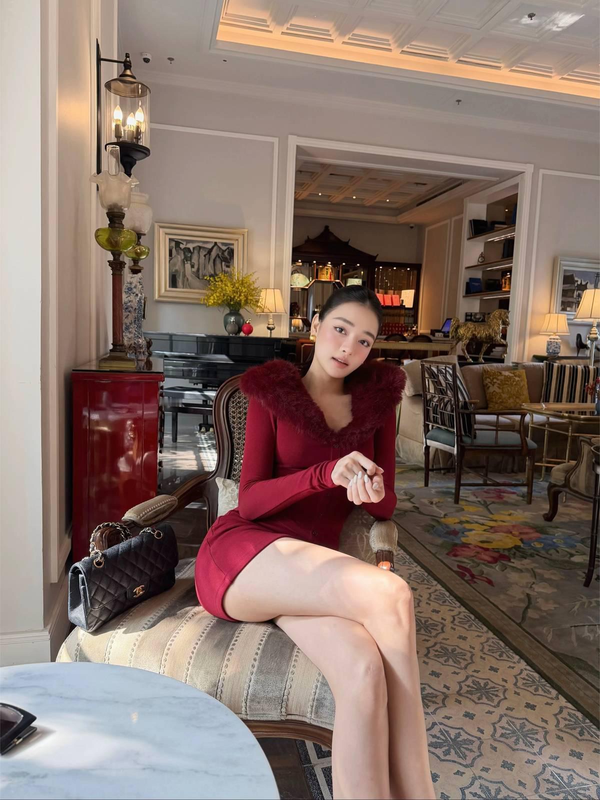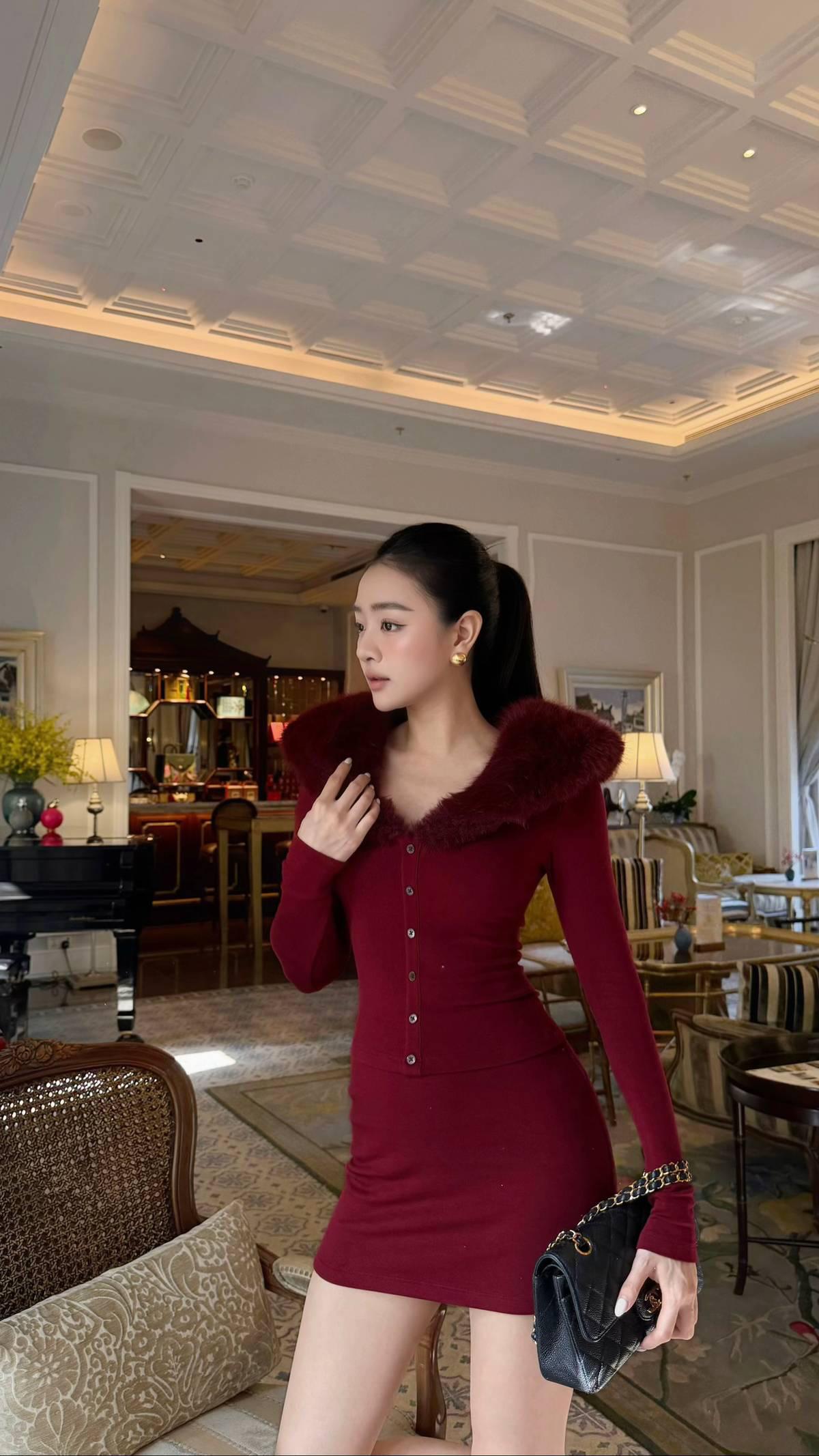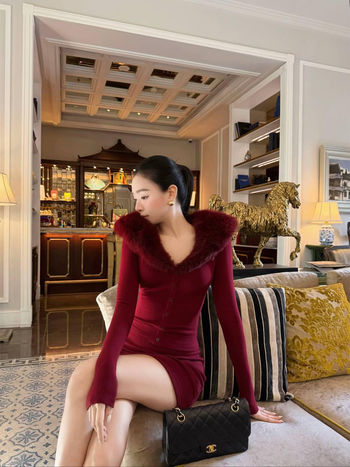 美腿辣妹,黑丝配黑色包臀连衣裙配红底黑高跟配披肩长卷黑发,简直绝了!