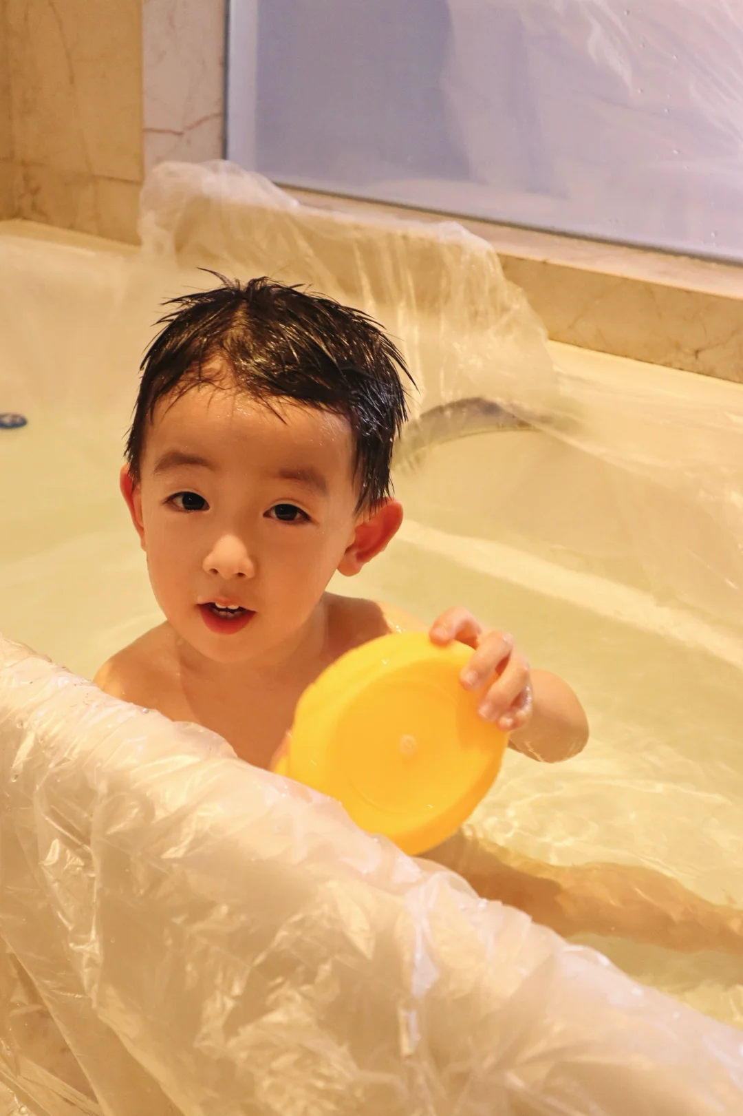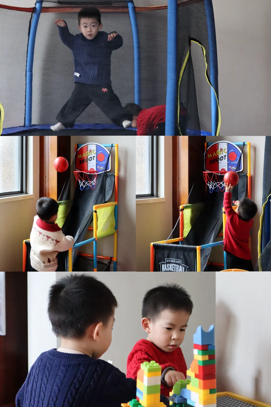 吃饱喝足直奔3F儿童乐园,蹦床、挖豆豆、投篮、高尔夫…让俩娃疯玩了一上午,电量直接耗尽。同层还有美发店、超大恒温游泳池和健身房、瑜伽练习室。爸爸带娃玩水💦,我去旁边的水疗池泡了个澡,简直是神仙日子。