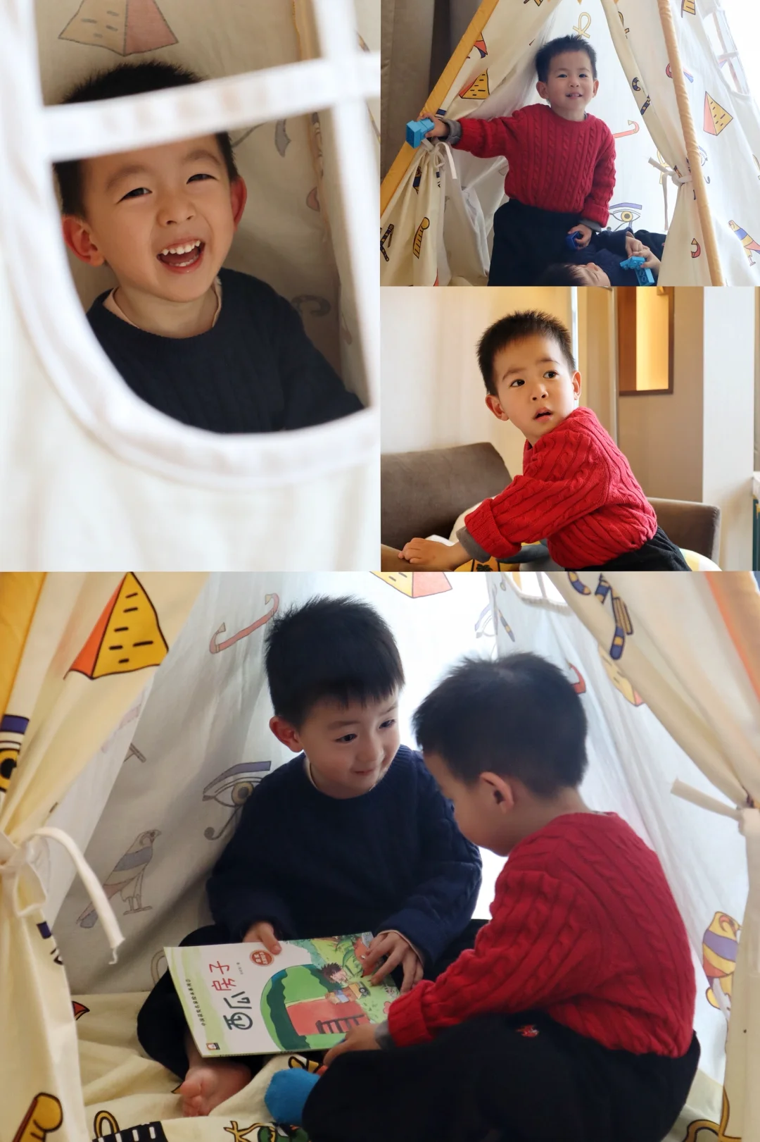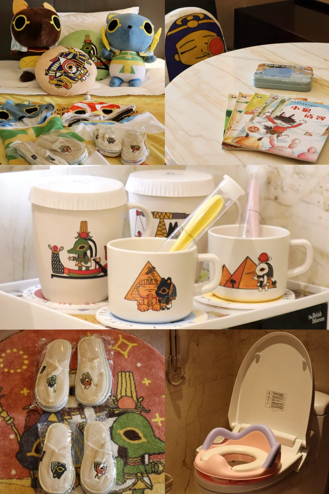 我们定的是亲子双床房,刚好适合我们双胞胎家庭。房间里到处都是软萌的埃及元素,法老玩偶、浴袍小帐篷,还有乐高拼图🧩和绘本。俩娃一进门就直接冲进游乐区,一会拼乐高~一会扎进⛺帐篷里看起绘本。老母亲终于能瘫在沙发上刷手机看剧!酒店还准备了双份的儿童牙具和小拖鞋,太贴心了💕