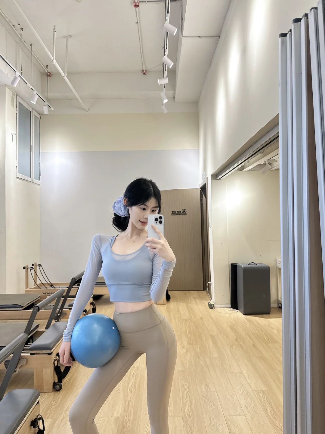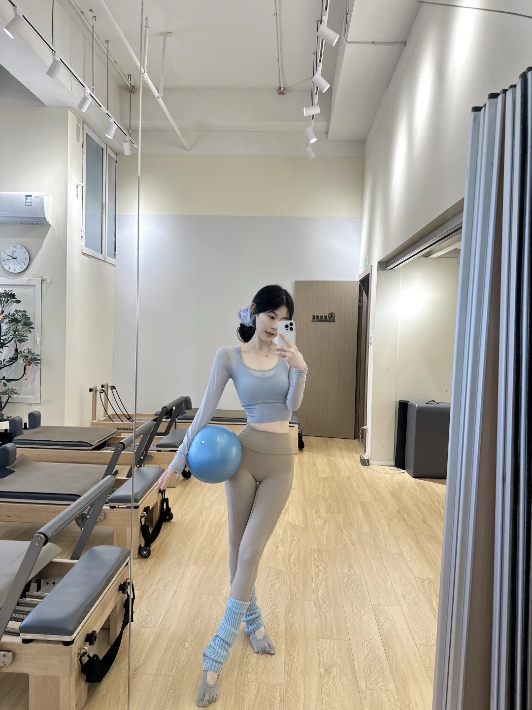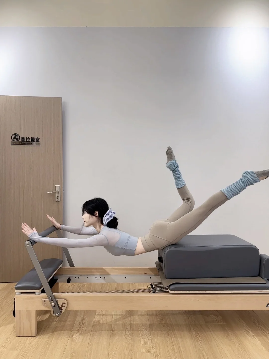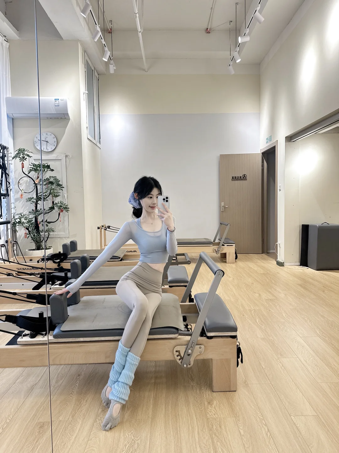 发现普拉提的魅力真的藏在细节里,核心床的弹簧阻力,能很好的练到深层核心,塑形真的可以这么精准 今日运动穿搭加分项: 浅蓝色网纱长袖+浅灰色高腰健身裤,透气不闷汗还显腿长!同色系发带和袜套一搭,运动感里带着小精致,假两件的设计不愧是经典款式,颜色淡系人会很爱,拍照超出片~ 健身服不只是装备,更是坚持运动的动力呀