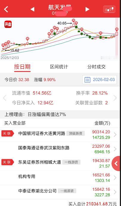 陈小群又发航发了!经历了前面的风波后,陈小群低调了一段时间,原本以为他退出江湖了,今天商业航天总龙头航发再次强势拉板,收盘后猫虎榜显示,陈小群大手笔9个小目标,大连黄河路这个席位大家都知道是谁,进9个小目标T了1.4个,很显然,陈小群之前就有底仓,最近航发连续拉伸,周五也差点涨停,肯定是陈小群在引导,这是打算搞二波吗?事实上,陈小群并没有休息,此前还出现在了通宇的榜上,虽然名声差了,但钱还是要继续赚啊,那么问题来了,他的席位溢价还会和之前一样吗?
