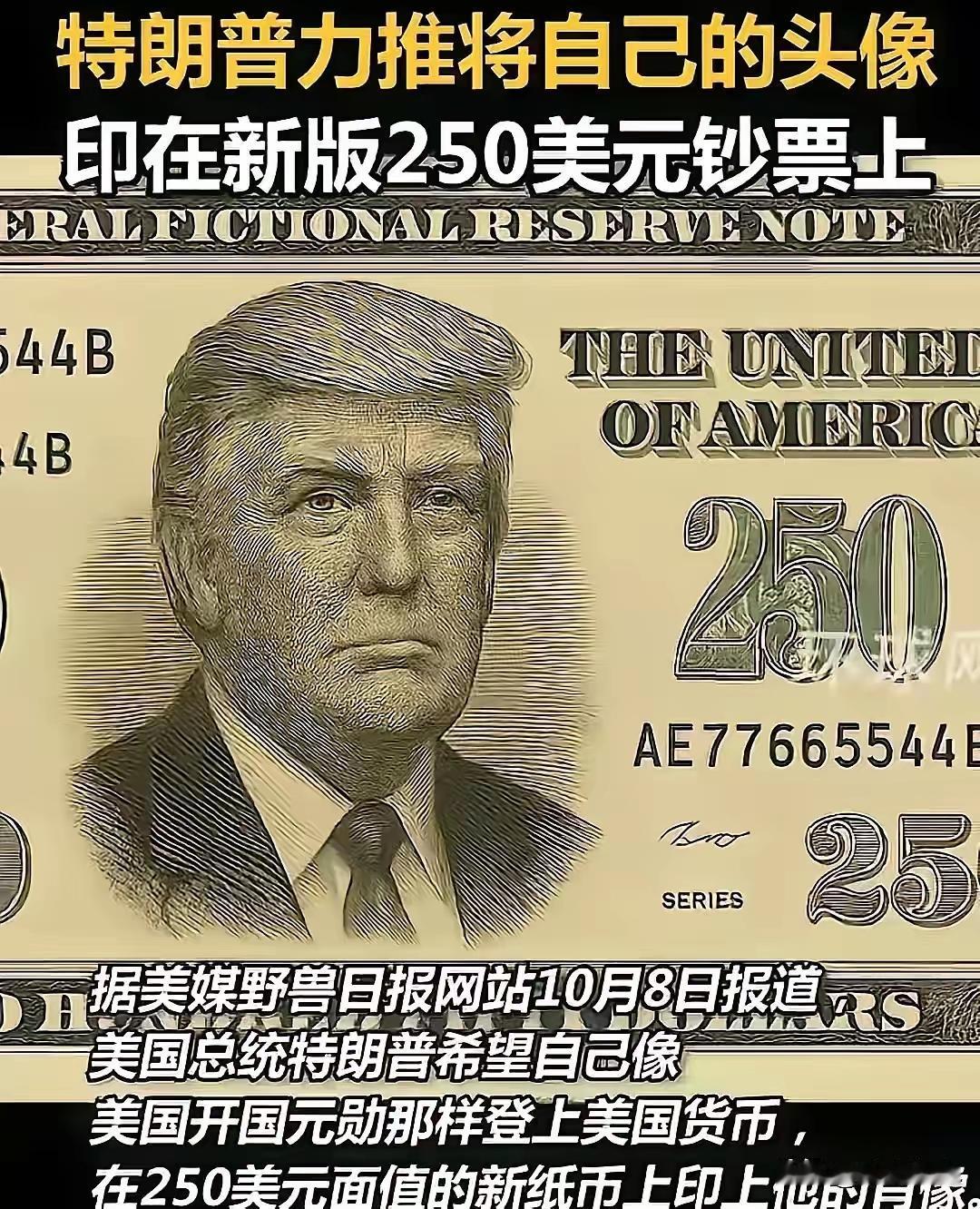 特朗普真是把“离谱”二字玩明白了!美媒报道,他竟想让自己肖像登上250美元新纸币,还在社交平台转发支持法案的文章。 美国众议院议员安迪·巴尔还在文章里猛夸特朗普,说他“革新美国政治”“带来大规模减税”等,称印他头像的250美元纸币是“表彰他的恰当方式”。可美国印在钞票上的都是对国家有大贡献且已过世的总统,特朗普倒好,完全无视规矩。而且选250美元面值,在咱中国文化里,这数字就像在说他是“二百五”,这真是自己往枪口上撞啊! 看来特朗普真是一个货真价实的“二百五”