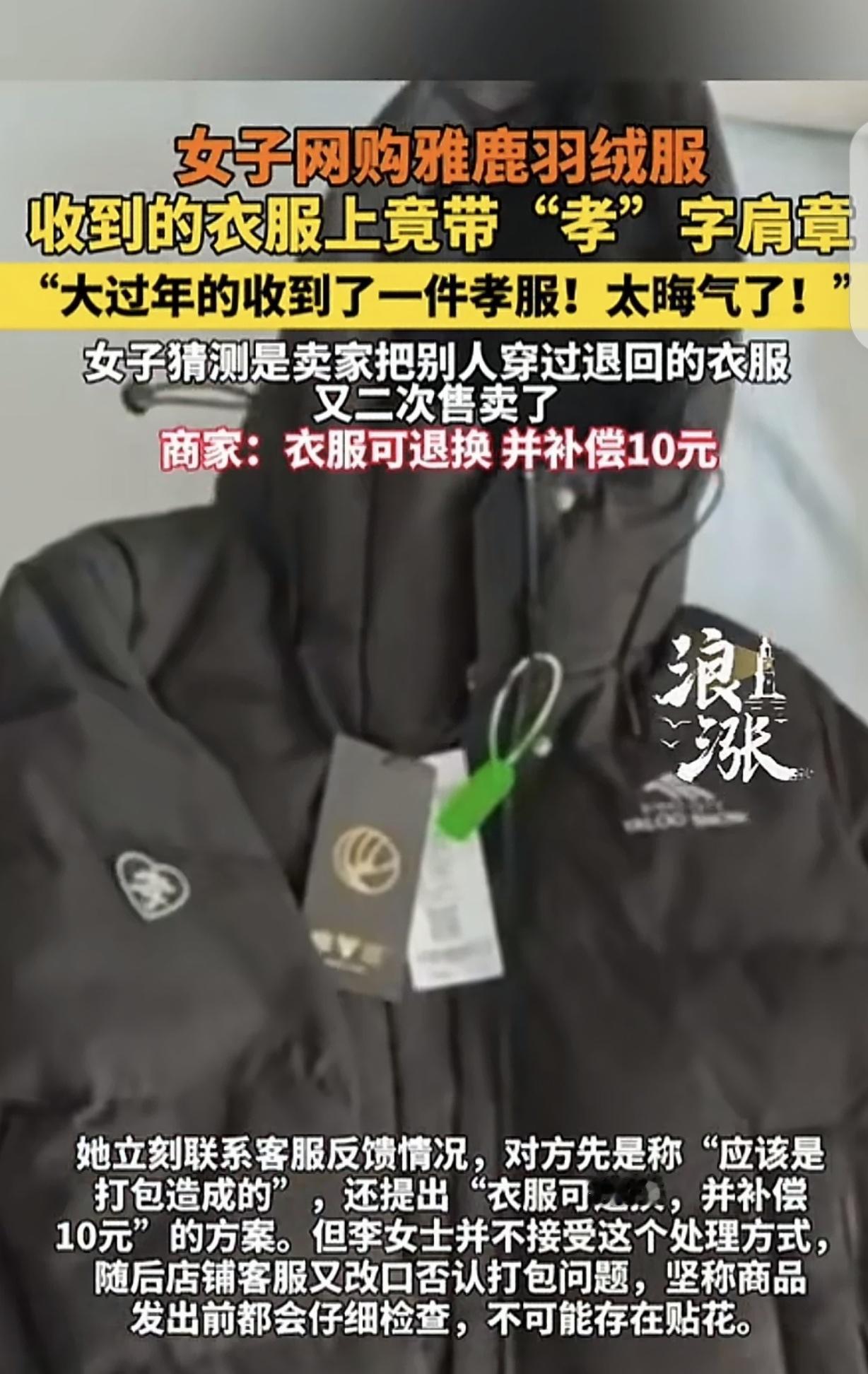 “太隔应人了!”吉林,一女子花499元网购羽绒服春节穿,收到后,发现衣服上竟带“孝”字肩章,可把女子隔应坏了,这大过年的太晦气了,女子认为卖家把别人穿过退回的衣服二次卖给她了,卖家却轻描淡写的说:衣服可退换,补偿10元。女子大怒:我差你那10元吗? 李女士花499元,网购了一件羽绒服,想春节走亲戚,穿着暖和点。 可她收到羽绒服,竟发现羽绒服上有个“孝”字肩章,可把她气的不轻。 家里老老少少都健健康康的,这大过年的,收到这样的衣服多不吉利,多晦气呀,不知道别人啥感受,反正李女士打心眼隔应。 她第一反应就是,又是哪个无德的买家,买了羽绒服参加完葬礼,穿完退货,但忘了把“孝”章摘下去了。 而卖家也好不到哪里去,肯定收到退货没检查,直接二次销售,给自己发来了。 如果卖家把“孝”章摘下去,她不知道也就无所谓了,如果这要是平时,她也不放在心里,可大过年的,图的就是家宅平安,人丁兴旺,突然收到这样的衣服,她心理上接受不了。 李女士联系卖家,对方如果一开始承认失误,真诚道歉,李女士气也就消了,可卖家却狡辩说是打包造成的。 谁家打包往衣服上贴一个“孝”章呀?再后来,卖家又说,他们发货前都认真检查,不可能有“孝”章贴。 李女士这个气呀,卖家意思难道是自己故意为之,然后找卖家麻烦?自己是吃饱了撑的吗? 卖家却说,可以退换货,再补偿10元,李女士更是火冒三丈,她差那10块钱吗?瞧不起谁呀? 李女士较真起来,她要求卖家提供打包视频的监控,卖家说尽快安排,但一直不给李女士。 目前平台已经介入,还没结果。 网购经验丰富的人说,网上几天后发货的一律不买,都是等退完货然后再发货。这种人太缺德了,参加葬礼的衣服还退回去。 不负责任的平台和不负责任的电商一并处罚,停业整顿并书面道歉。 部分平台及电商太不把顾客买商品当回事,还屡教不改! 实体店就全部是新的吗,到处都是导购穿着带吊牌的,尤其是女装。 用七天的时间:用无理由、退货。平台就是恶意纵容人性的扭曲。 这事儿搁谁身上都能气炸!大过年的收到带“孝”字的衣服,卖家还一副无所谓的样子,完全是不把顾客的感受当回事儿。 先不说这衣服是退货没检查还是故意发的,卖家的态度就欠收拾。刚开始狡辩,后来又拿10块钱打发人,这不是恶心人呢嘛。谁差你那10块钱?分明是觉得顾客好欺负。 而且平台也有责任,七天无理由退货本来是给顾客保障,结果让一些无良买家钻空子,把穿过的衣服退回去,卖家又不仔细检查,最后坑了新顾客。 要是卖家能把好验货这一关,也不至于闹成这样。李女士较真要监控是对的,就得让卖家拿出证据来,不然凭啥平白受这个气。 《消费者权益保护法》第8条,消费者享有知悉其购买、使用的商品真实情况的权利。 卖家没告知衣物存在非正常使用痕迹,侵犯了李女士的知情权。且卖家以打包失误、补偿10元等方式敷衍处理,没尊重消费者人格尊严与民族风俗习惯,春节忌讳,应承担赔礼道歉、退货退款等民事责任,如果情节严重,相关部门可处警告或罚款。 对此,你怎么看? 关注@运良说法 学法律知识不迷路