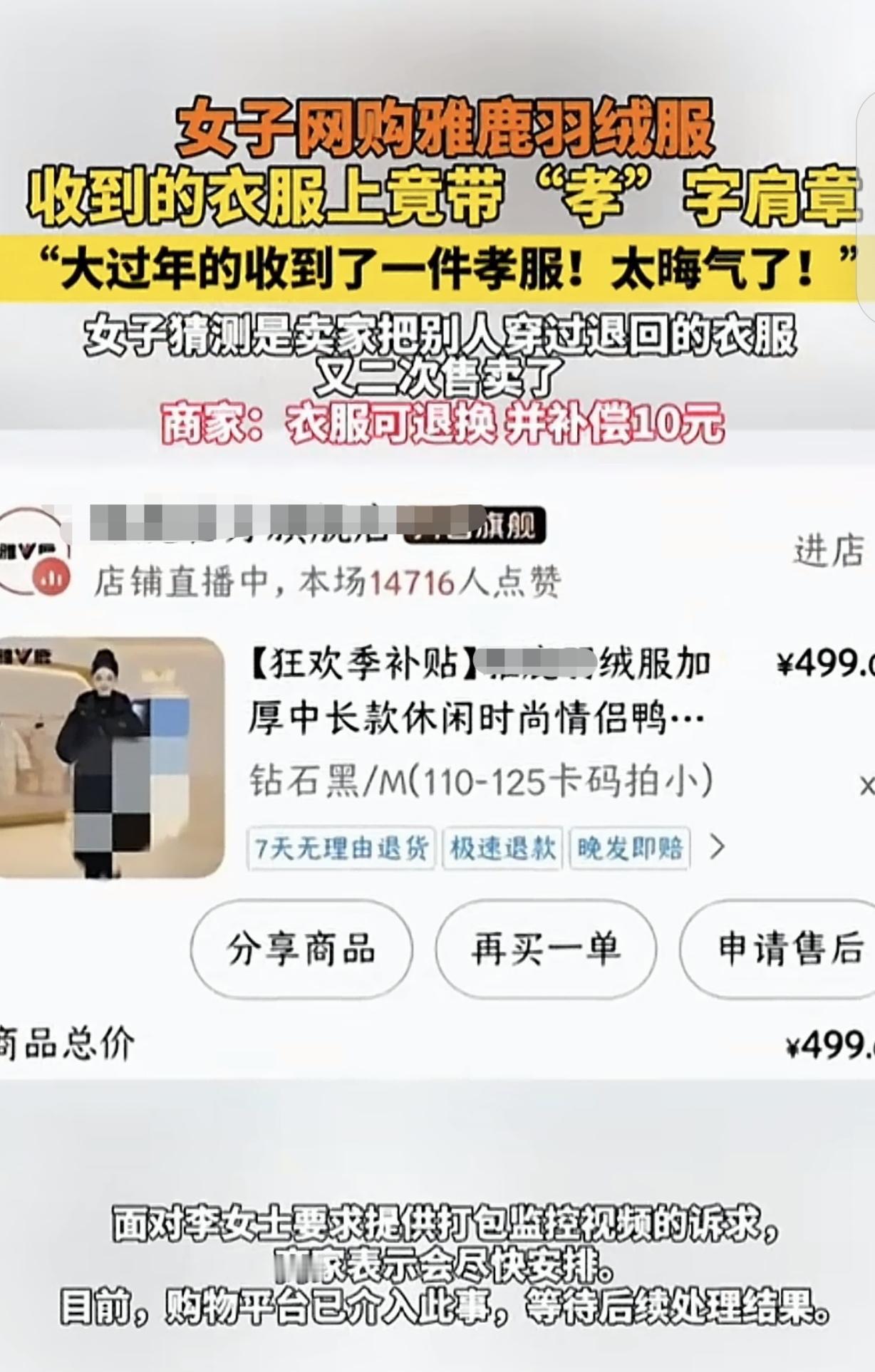 “太隔应人了!”吉林,一女子花499元网购羽绒服春节穿,收到后,发现衣服上竟带“