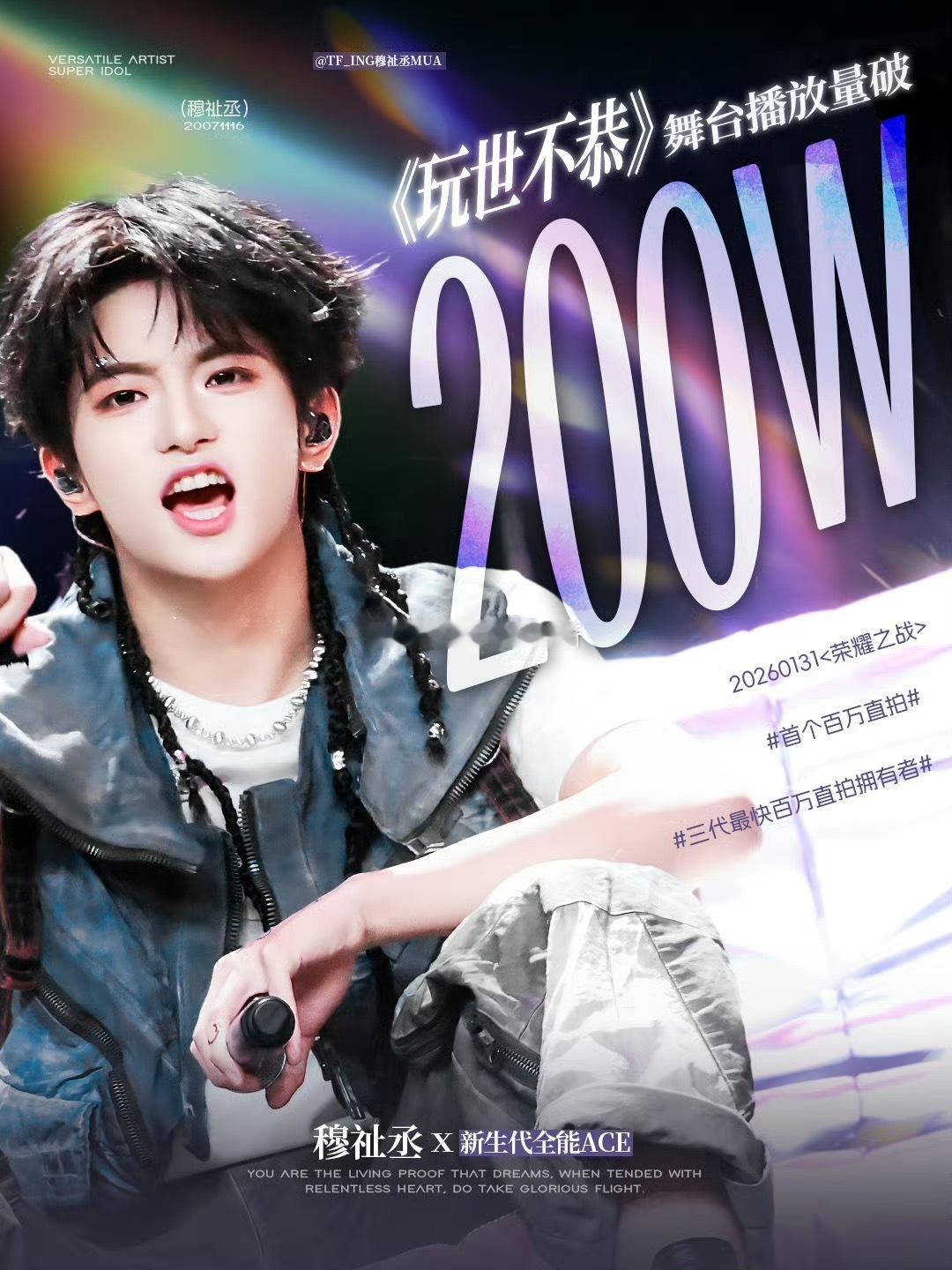 【投稿】穆祉丞《玩世不恭》直拍用时 69.5h 播放量突破 200 万‼️势如破竹