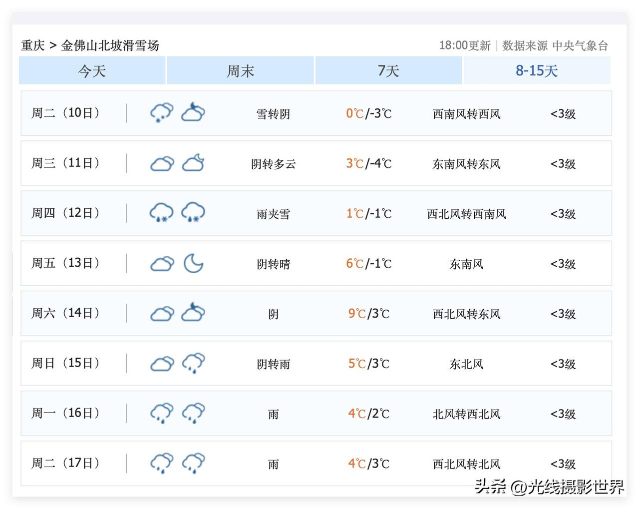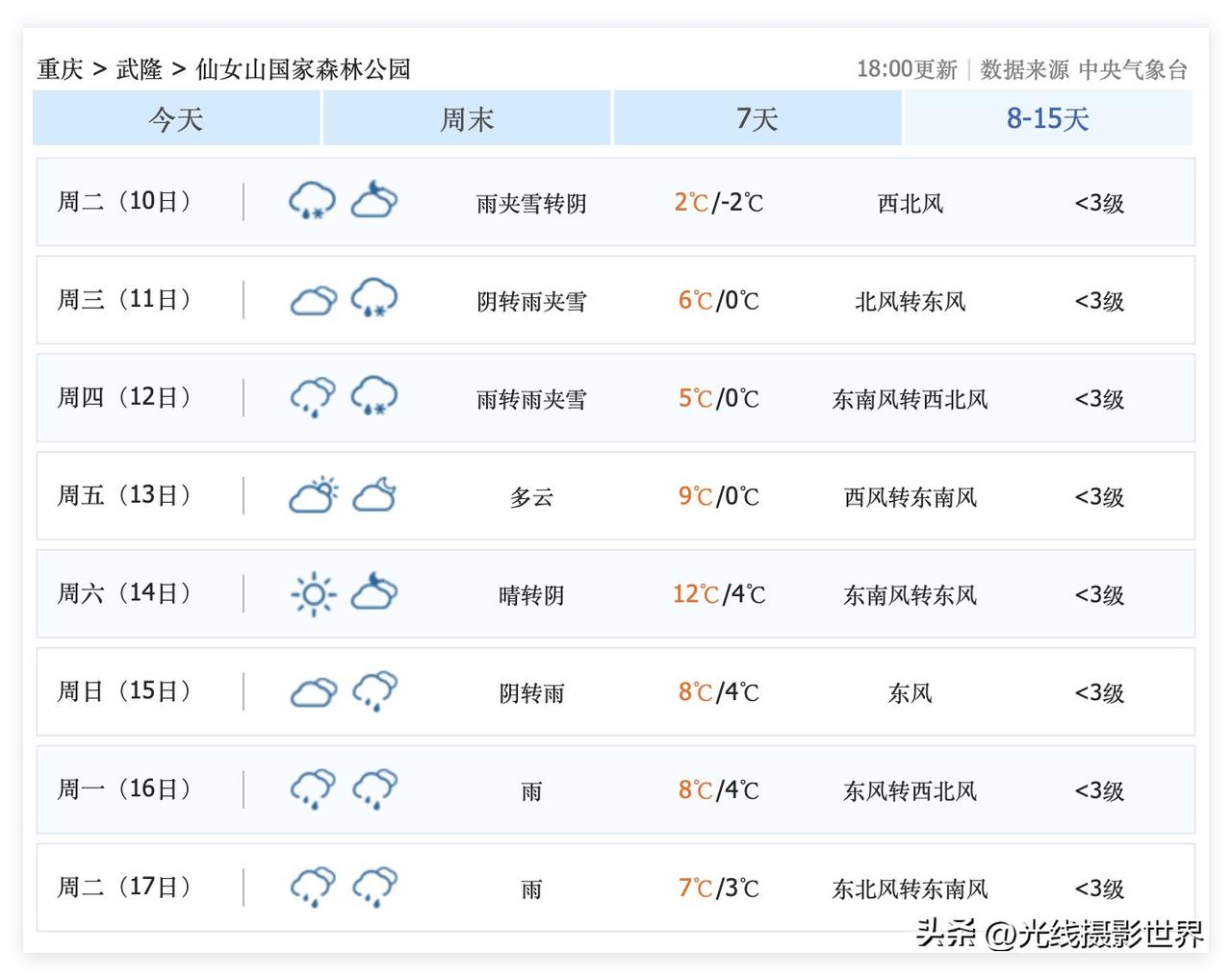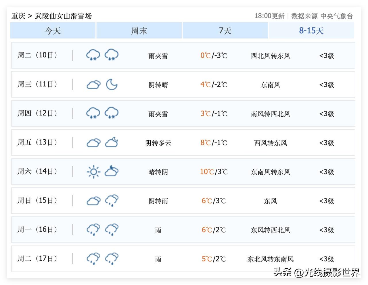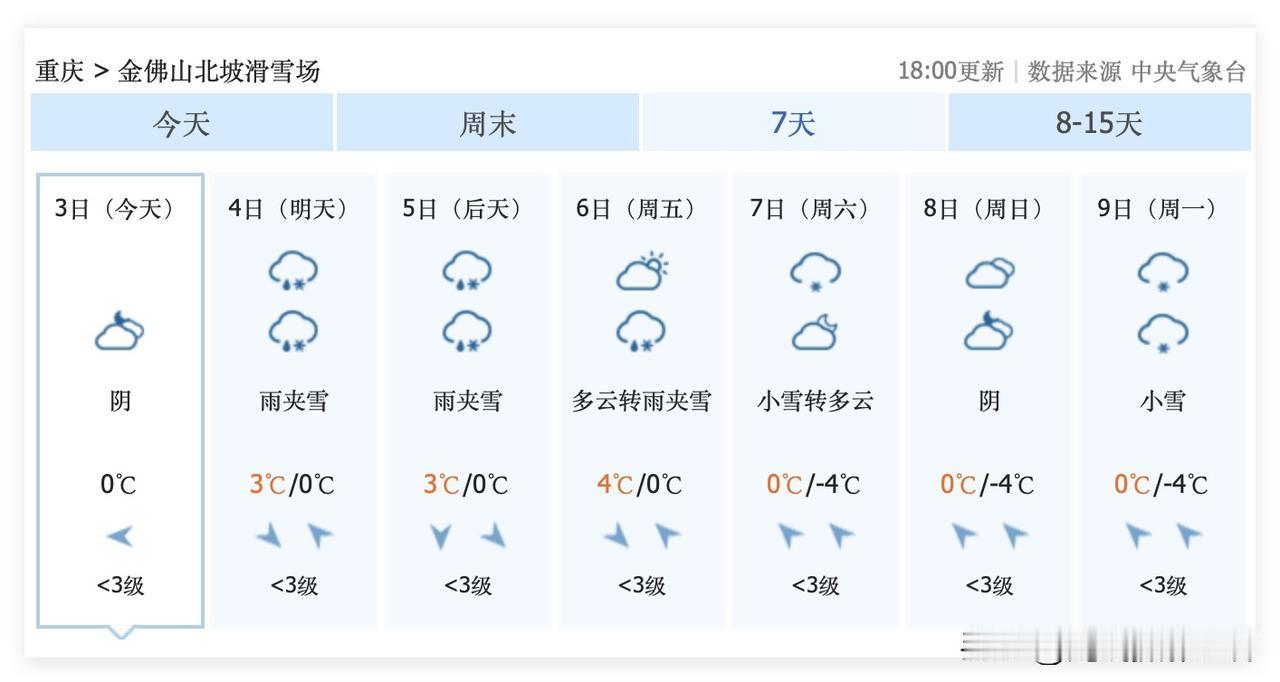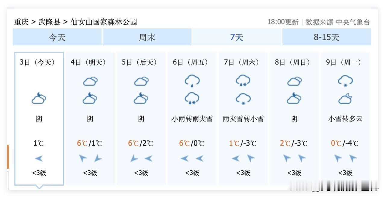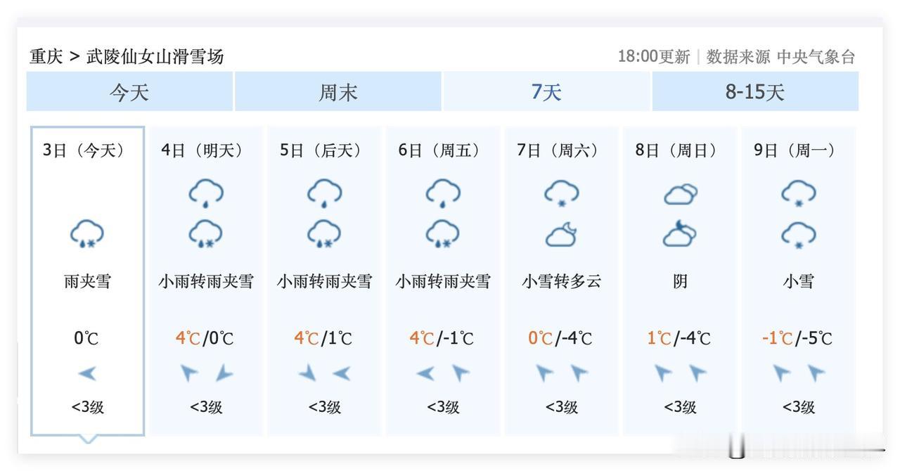 这周末,重庆主城区大降温,2月7日到9日,重庆可能会迎来今年冬天最后一次降雪过程!仙女山,金佛山……2月7日到9日的这次降雪之后,可能再也不会下雪呢!大家一定要珍惜啊! 2月10日到17日,成渝经济圈,四川盆地,重庆,成都,快速回暖,最高气温20度! 2月17日以后的天气预报虽然还没出来,但是,大家难道不知道2月17日以后下雪的概率,非常渺茫吗?! 因此,重庆人,成都人,好好珍惜今年冬天最后一次冻死人的大降温吧! 2月7日到9日,重庆,成都,周边高山的降雪……大家好好珍惜……当然,川西的高山还是更厉害一些……川西的高山,五一节都可能大雪纷飞……那是另外一码事! 仙女山,金佛山,峨眉山,西岭雪山……好吧,西岭雪山还是算了,性价比倒数第一……