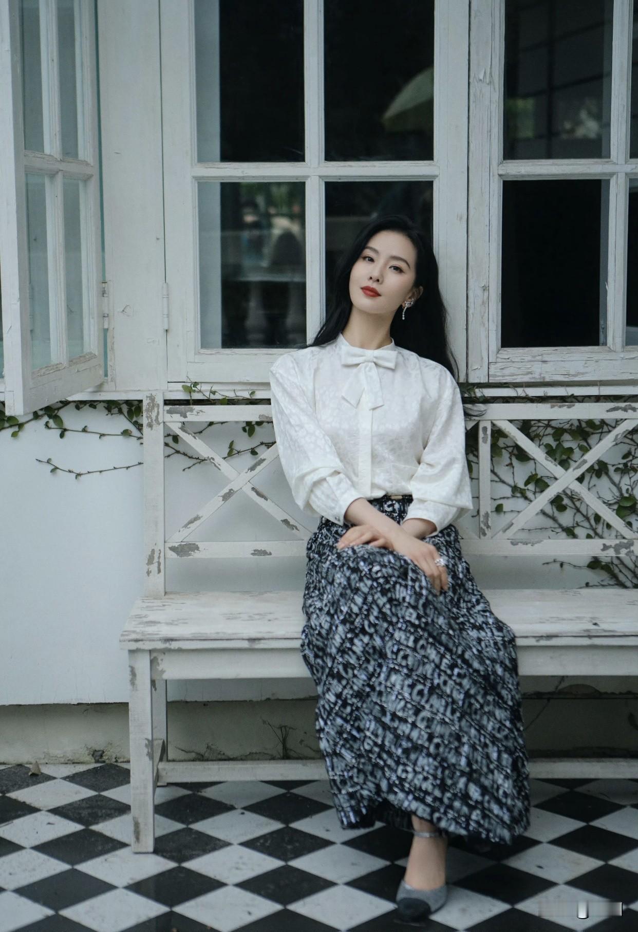 姿势方面,微微侧身,一只手轻搭在栏杆上,眼神望向远方,能展现出温婉气质。也可以手