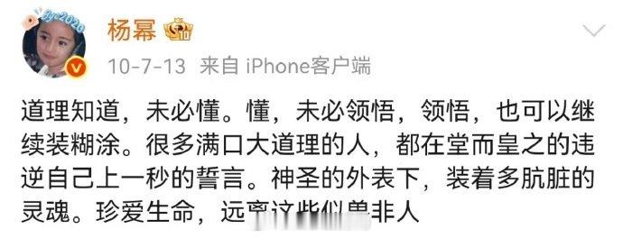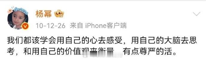 杨幂是少女时期的英雄主义 心情不好的时候,就去翻翻杨幂的微博吧。你会发现,早在二十出头的年纪,她就展现出了“少女的英雄主义”——那种坚持自我、活得通透、早早开始“爱自己”的清醒和勇气。时间证明,她不仅说了,更做到了。
